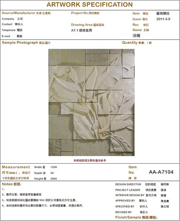 51A設計機構-致力于中國酒店軟裝工程軟裝設計研究,成就中國高端酒店軟裝工程的設計領航者。51A設計機構提供軟裝產品(酒店浮雕)的專業(yè)解決方案;切實解決酒店客戶在酒店籌備階段遇到的一切酒店軟裝的所有問題。