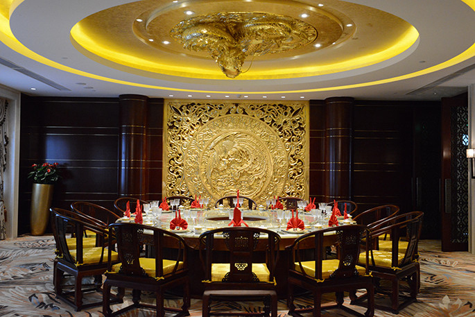 51A設(shè)計機構(gòu)2012年9月承接的河北承德嘉和國際酒店位于承德市雙橋區(qū)迎賓路23號,為五星級度假酒店。51A設(shè)計在尊重酒店管理公司與業(yè)主相關(guān)意向的前提下,對酒店龍鳳餐廳的“鳳”浮雕“龍”圓雕進行了設(shè)計規(guī)劃。51A設(shè)計機構(gòu)規(guī)劃設(shè)計的龍鳳餐廳浮雕及圓雕,為了控制成本,浮雕圓雕的胚體采用玻璃鋼材質(zhì),面層采用真金箔貼金工藝;成品效果金碧輝煌,既完全反映業(yè)主對其龍鳳會所“尊貴唯一”的功能空間定位,又規(guī)避常規(guī)五星級酒店裝飾藝術(shù)品的風(fēng)格所呈現(xiàn)的“千人一面”的特質(zhì),符號性強識別性強,給人留下深刻印象。