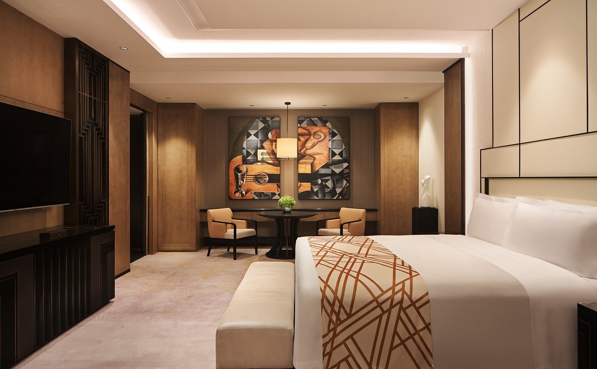 在豪華客房尊享舒適奢華體驗(yàn)??头棵娣e達(dá)45平方米,配有舒適的工作區(qū)域,知名品牌的洗護(hù)套裝,高速互聯(lián)網(wǎng)連接,此外,云石浴室設(shè)雙臉盤、浴缸及獨(dú)立淋浴間。
