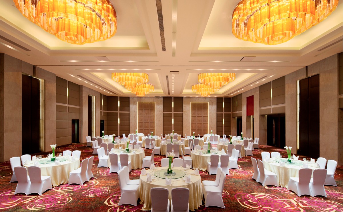 酒店擁有一間無柱大宴會廳以及18個大小不同的會議室。648平方米的宴會廳可以最多同時容納750位客人,配有寬敞接待區(qū)以及2個貴賓休息室。