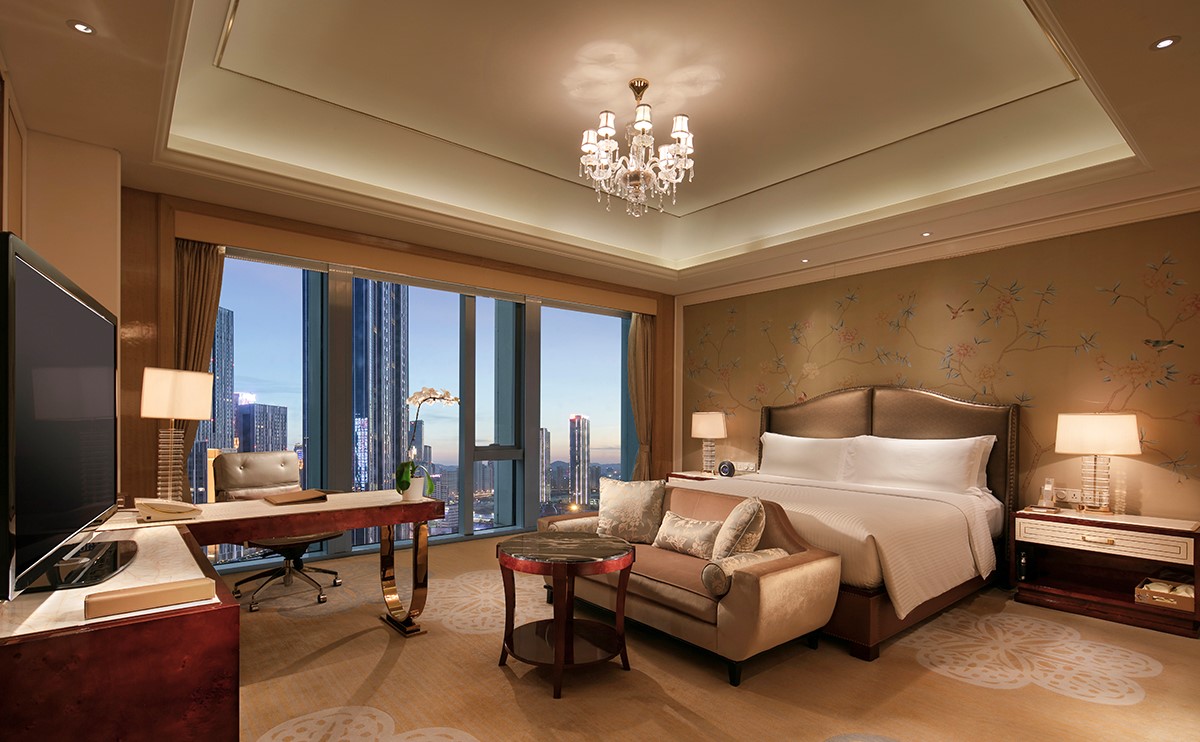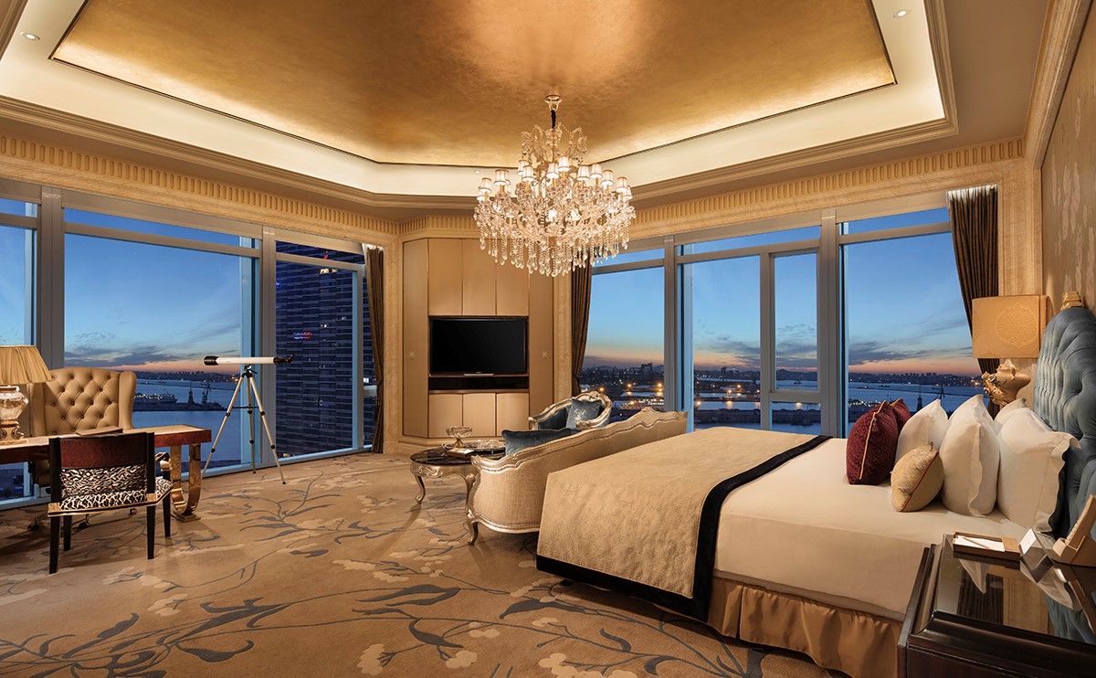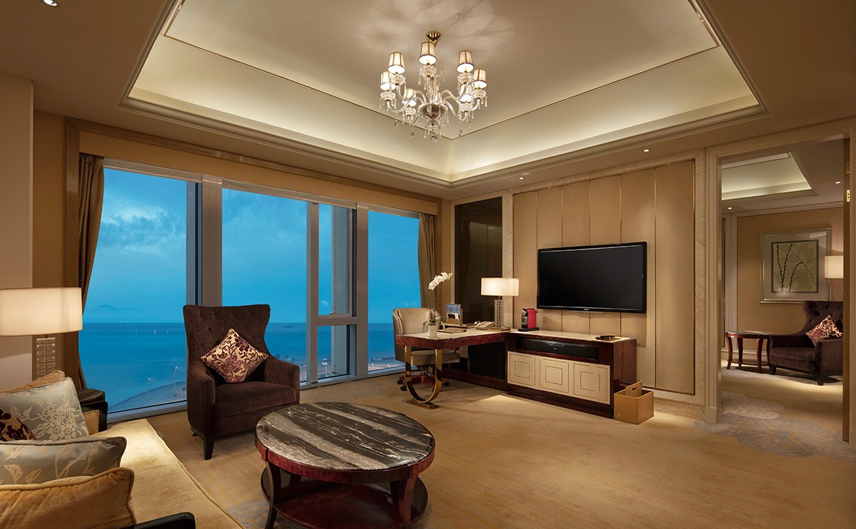 海景套房入住賓客可享用行政酒廊等。房間配備舒適的大廳和獨立臥室,總統(tǒng)套房提供給賓客高規(guī)格的奢華體驗,飽覽大連海港的瑰麗景色?,F(xiàn)代化的奢華與精致風格完美相融。