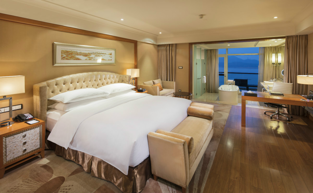 客房布置優(yōu)雅,時(shí)尚的豪華湖景套房帶有寬大敞亮的私人陽(yáng)臺(tái),更可觀180度千島湖美景。寬敞的客廳配備了超大工作區(qū),高速無(wú)線上網(wǎng)方便您網(wǎng)上辦公。
