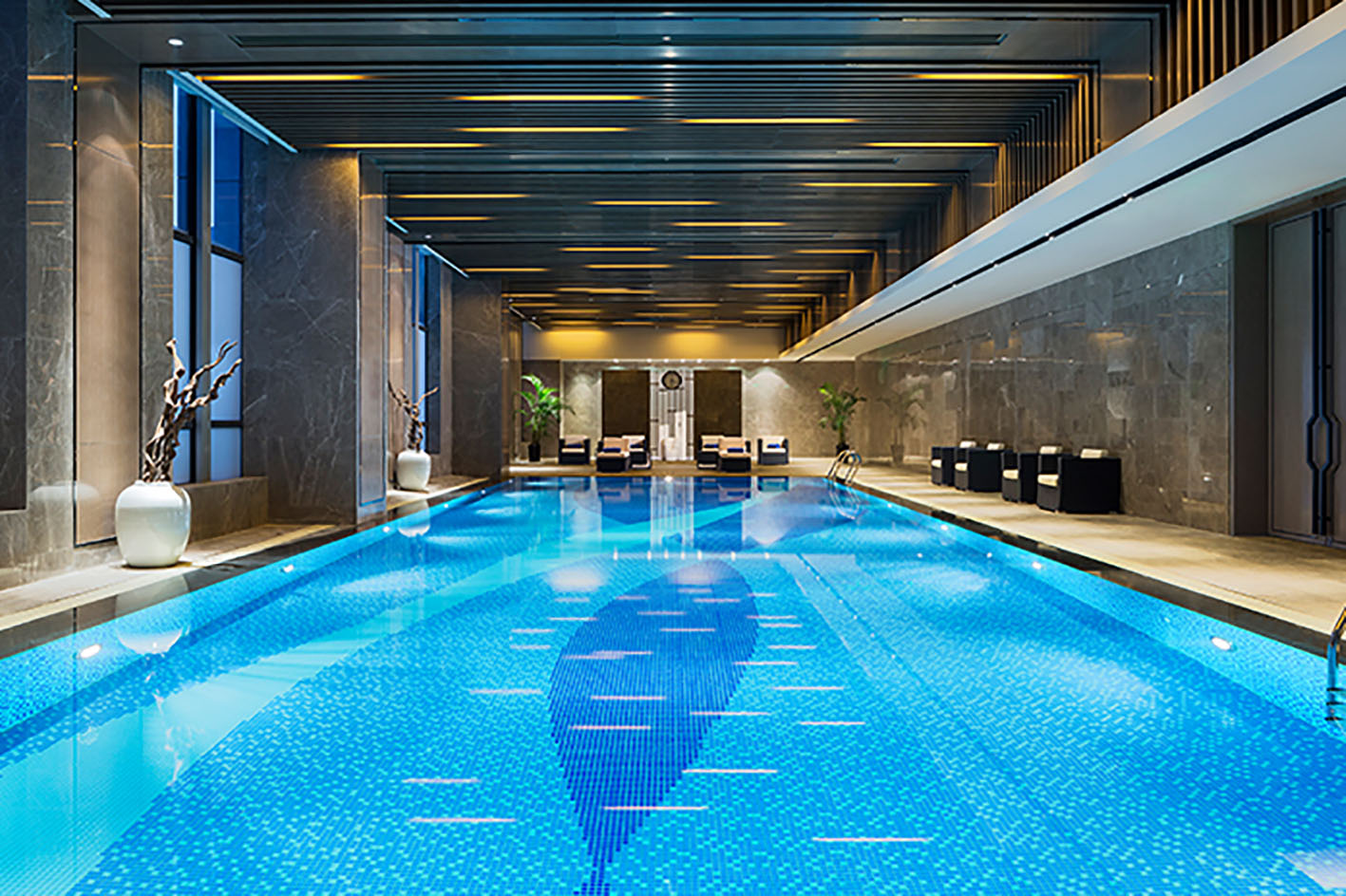 室內(nèi)恒溫游泳池寬敞干凈,等您來暢游一番。
