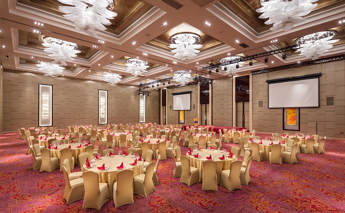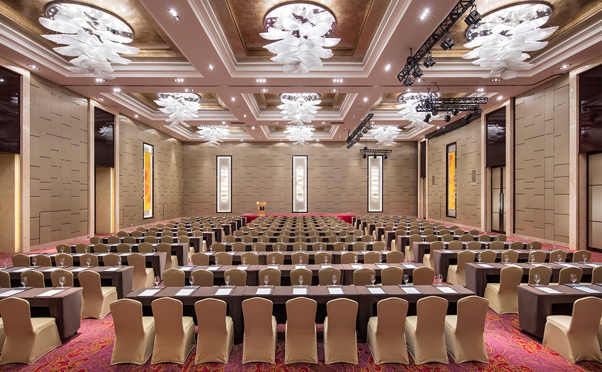 無(wú)柱大宴會(huì)廳-云翔廳面積達(dá)750平方米、層高9.6米,9個(gè)靈活多功能廳設(shè)計(jì)優(yōu)雅,設(shè)備齊全,是舉辦各類社交活動(dòng)的理想之所,滿足各類宴會(huì)及會(huì)議需求。