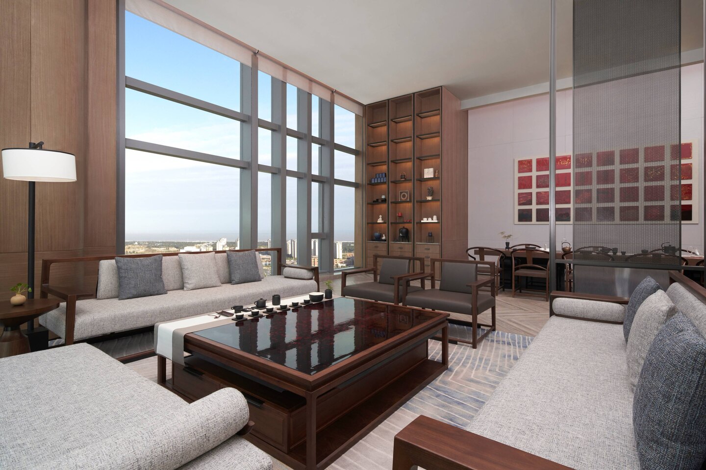 酒店采取“浮風(fēng)流水”設(shè)計(jì)理念,融合了海上絲綢之路的海洋文化、世界漆藝與茶藝。