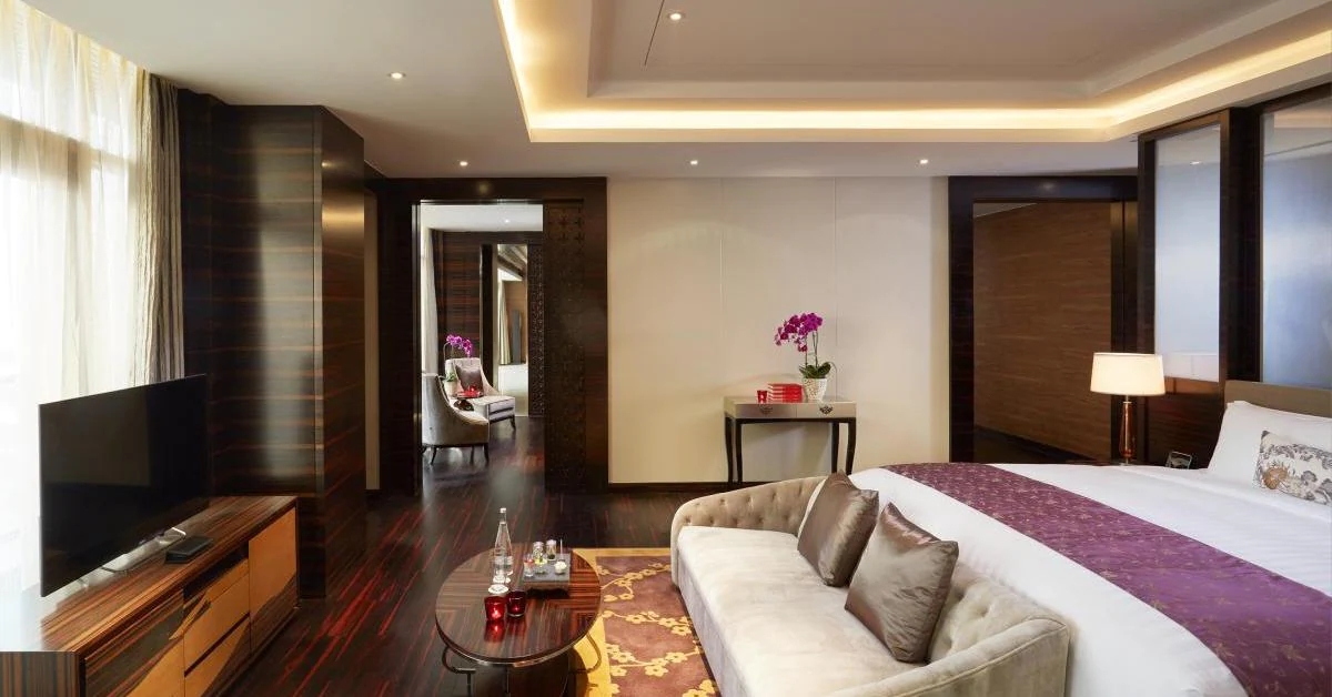 盛仕紅閣陽(yáng)光套房 (RED LEVEL JUNIOR SUITE):寬敞明亮的 69 平方米客房擁有典雅的室內(nèi)設(shè)計(jì),為講究的旅客而設(shè)。套房設(shè)有按摩浴缸,其通過美麗的玻璃面板與臥室隔開。它結(jié)合了新技術(shù),其裝飾會(huì)讓人聯(lián)想到中國(guó)古代風(fēng)格。