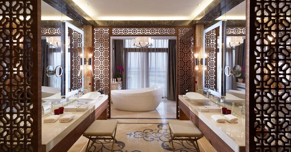 總統(tǒng)套房 (PRESIDENTIAL SUITE REDLEVEL):沉浸在 355 平方米的天堂,為美利亞的精選 VIP 而設(shè)計(jì)。客人可以在寬敞的套房?jī)?nèi)欣賞人工湖和酒店花園的壯麗全景??偨y(tǒng)套房讓客人體驗(yàn)可與中國(guó)景致相媲美的精致之處。