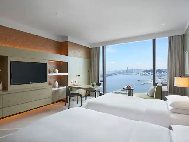 大連君悅酒店坐落在一幢宏偉的建筑內(nèi),位于大連星海灣,這座城市被譽(yù)為“中國(guó)北方的明珠”和“浪漫之城”。