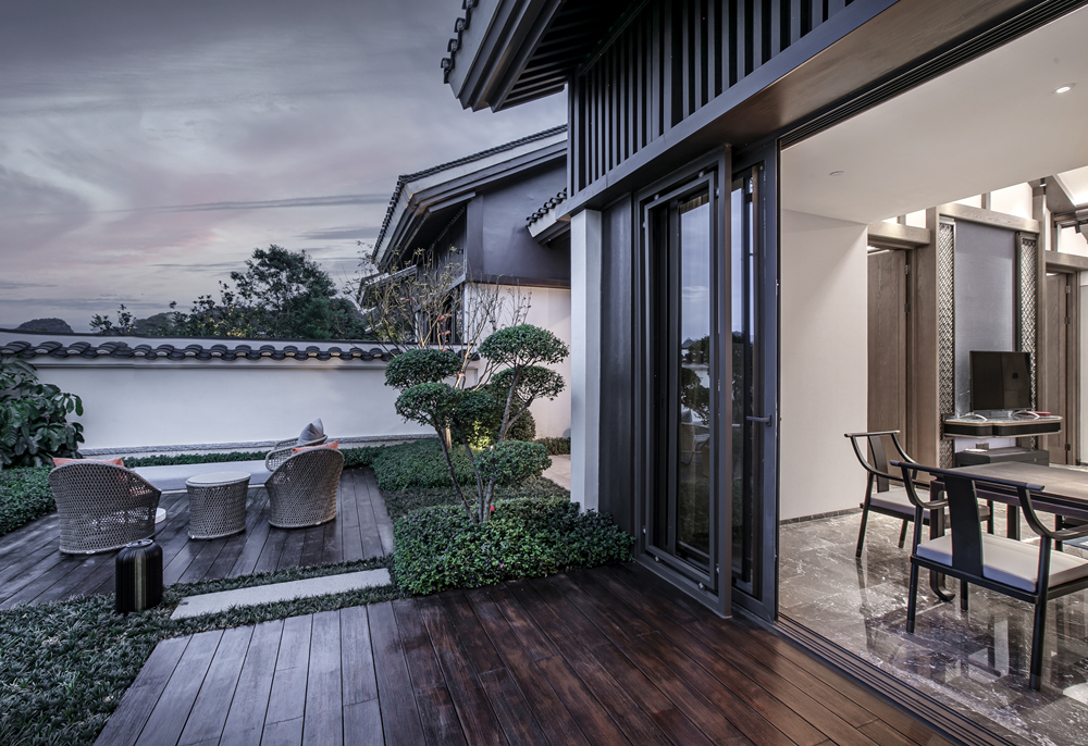 室內(nèi)裝飾采用侗寨民居簡(jiǎn)約的風(fēng)格,通過(guò)微地形高差設(shè)計(jì),具有良好的景觀視野。