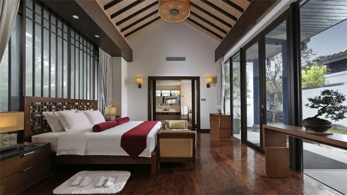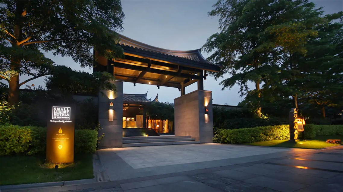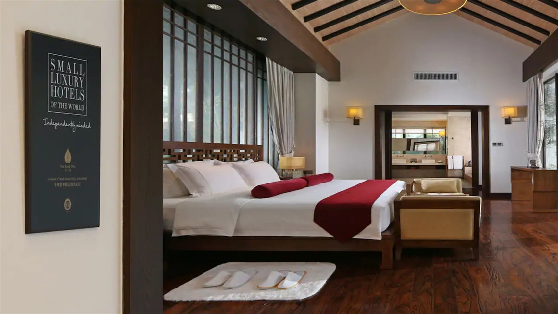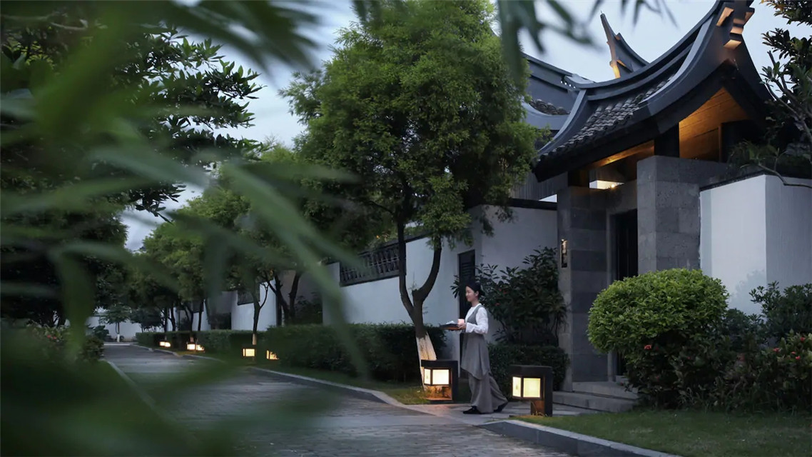 行館共有17棟別墅,木門(mén)鑲刻著“云門(mén)、扶云、涵舍”。每一棟私人院落設(shè)計(jì)禪風(fēng)詩(shī)意,強(qiáng)調(diào)貼近自然,以傳統(tǒng)文化及茶文化等釋義自然禪,一扇門(mén)、一泓溫泉、一盞香茶、一方靜謐。