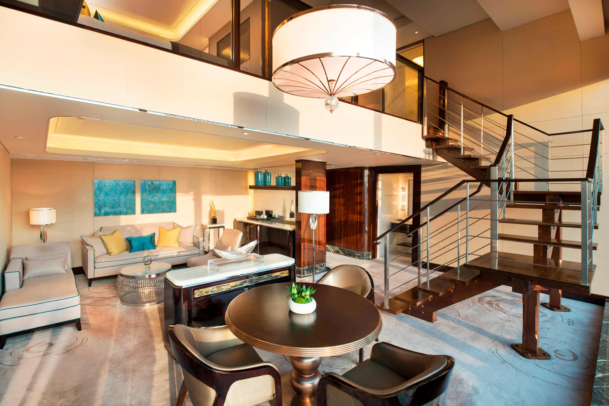 閑逸廊以及瑞吉吧位于酒店 96 樓,傳統(tǒng)風(fēng)情與時(shí)尚氣息于此交相互融。