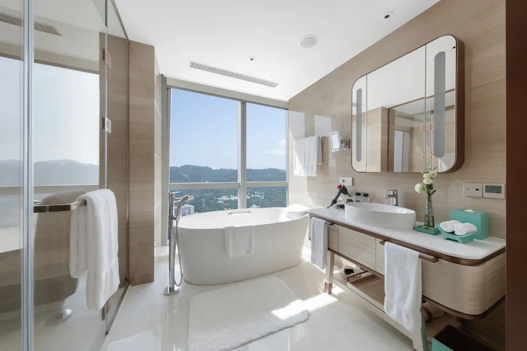 現(xiàn)代帆船極致的奢華感充盈著整個(gè)空間氛圍,家具、飾面材料和客房設(shè)計(jì)均延續(xù)了“江中航行”這一主題。運(yùn)用游艇客艙的視覺(jué)元素和全景落地窗進(jìn)行設(shè)計(jì),致力為客人打造無(wú)遮擋的開(kāi)闊視野和高品質(zhì)的入住體驗(yàn)。