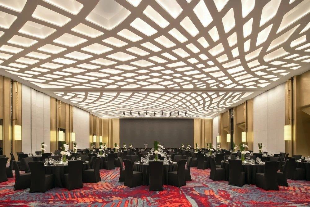 進(jìn)入酒店,大面景觀玻璃墻,使中心區(qū)繁華城市景觀盡收眼底?!耙挥[眾山小”的心境與開(kāi)闊的視野息息相通,凝聚為內(nèi)在氣韻。