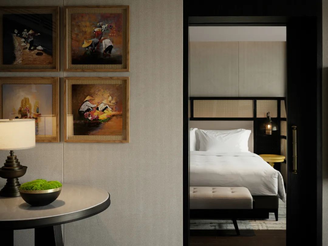 客房設(shè)計(jì)之中將歸僑情感融於空間之中,以東意西境的藝術(shù)手法,體現(xiàn)出遊有方,家在此的濃重的中國(guó)底蘊(yùn)及西方情懷完美融合。
