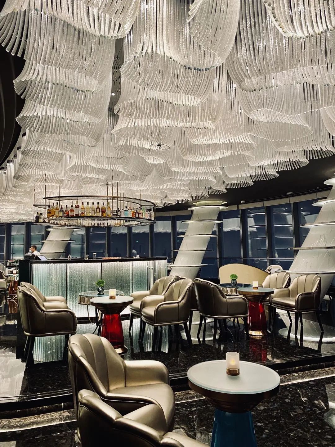 84層的弋酒廊,打破了我們對酒吧的固有認知。面積超大,各個空間錯落有致,仿佛來到一座深夜迷宮。