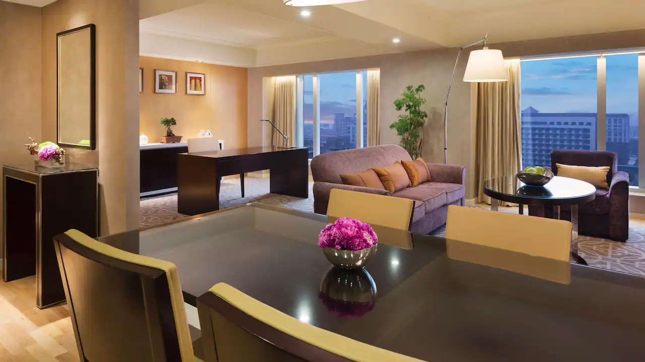 套房寬敞豪華,達87平方米, 配備一間獨立的客廳、兩個獨立的臥室。各項設(shè)施一應(yīng)俱全,舒適寧謐,別具匠心的雙臥室布局、獨立的起居空間以及完善配套的設(shè)施,為家庭或商務(wù)出行帶來私人府邸式入住體驗。