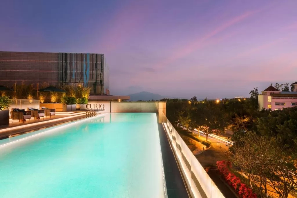 客人可以通過寬大的落地窗欣賞壯麗的東平山景、迷人的城市景觀和海岸線全景。