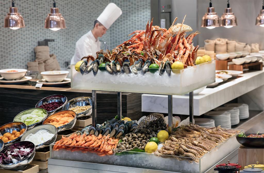 萬薈軒餐廳每天早晨供應自助早餐,并且提供全天餐飲。