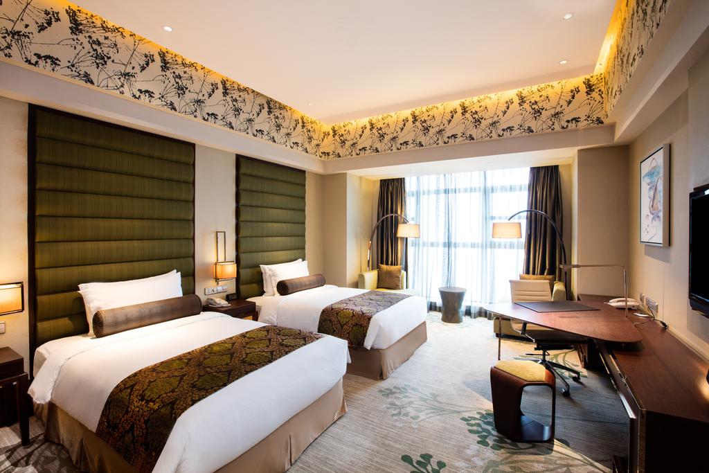 合肥皇冠假日酒店典雅而舒適的客房配有迷你吧、冰箱和熨燙設(shè)施。