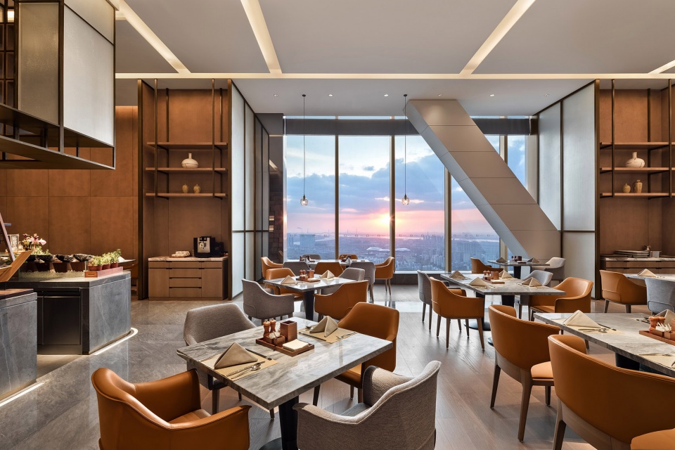 褪去夜的浮華,全日餐廳是狂歡后的清雅。空間以低明度色彩,營造靜雅氛圍。云端落座,迎朝陽送余暉,于極盡放松中,品味珍饈美味與難得的清閑時(shí)光。