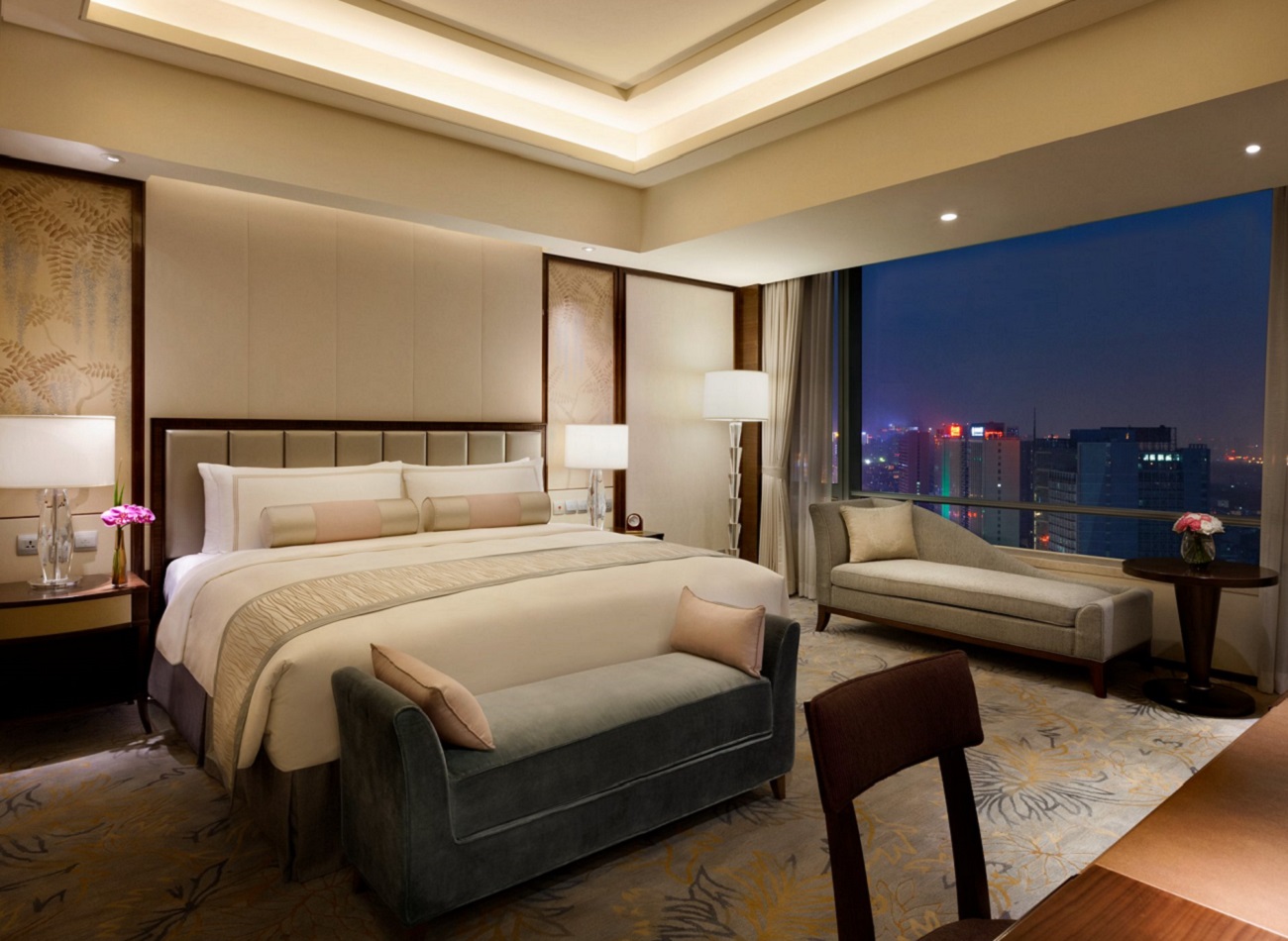 透過豪華客房的明亮落地窗可欣賞到迷人的花園景色或合肥都市景觀。