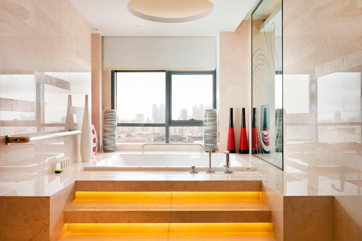 酒店客房寬敞迷人,為賓客在青島提供了一處寧?kù)o的休閑之所,客房時(shí)尚寧?kù)o,配備豪華床品、雨林淋浴間、高速 Wi-Fi 以及可俯瞰青島市景的落地窗。