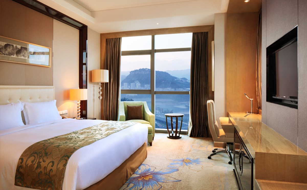 酒店共有243間客房,賓客可以享受舒適的設(shè)施,寬敞的工作區(qū),高速無(wú)線網(wǎng)絡(luò)接入,高品質(zhì)室內(nèi)用品以及透過(guò)全景落地窗欣賞到的山和長(zhǎng)江美景。