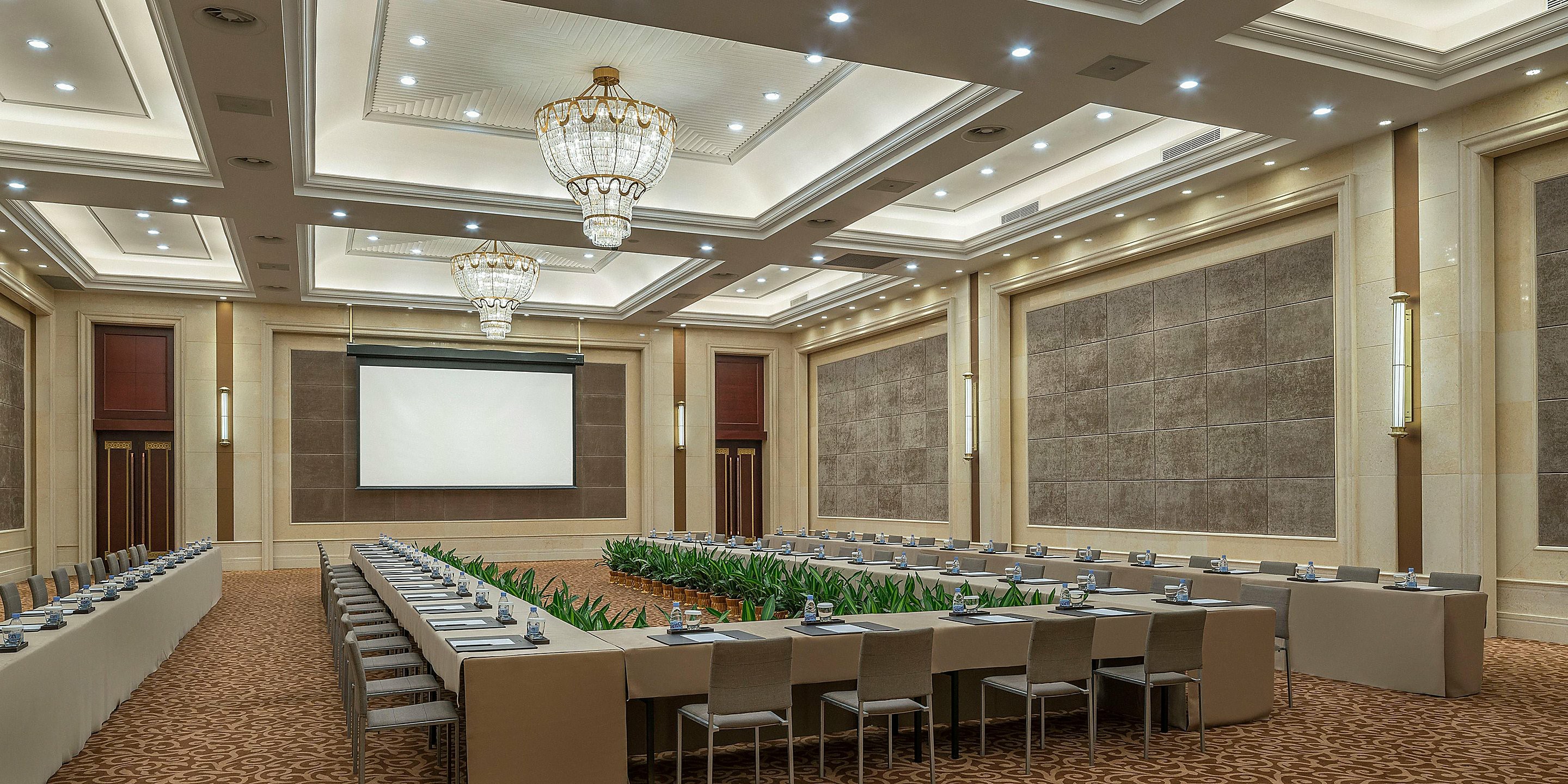 武漢洲際酒店會(huì)議室體現(xiàn)了優(yōu)雅裝飾與現(xiàn)代科技的完美結(jié)合。