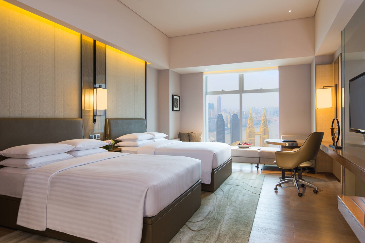酒店共有341間設(shè)計典雅的客房及套房,位于30-49層,高居云端之上,坐擁城市天際線。
