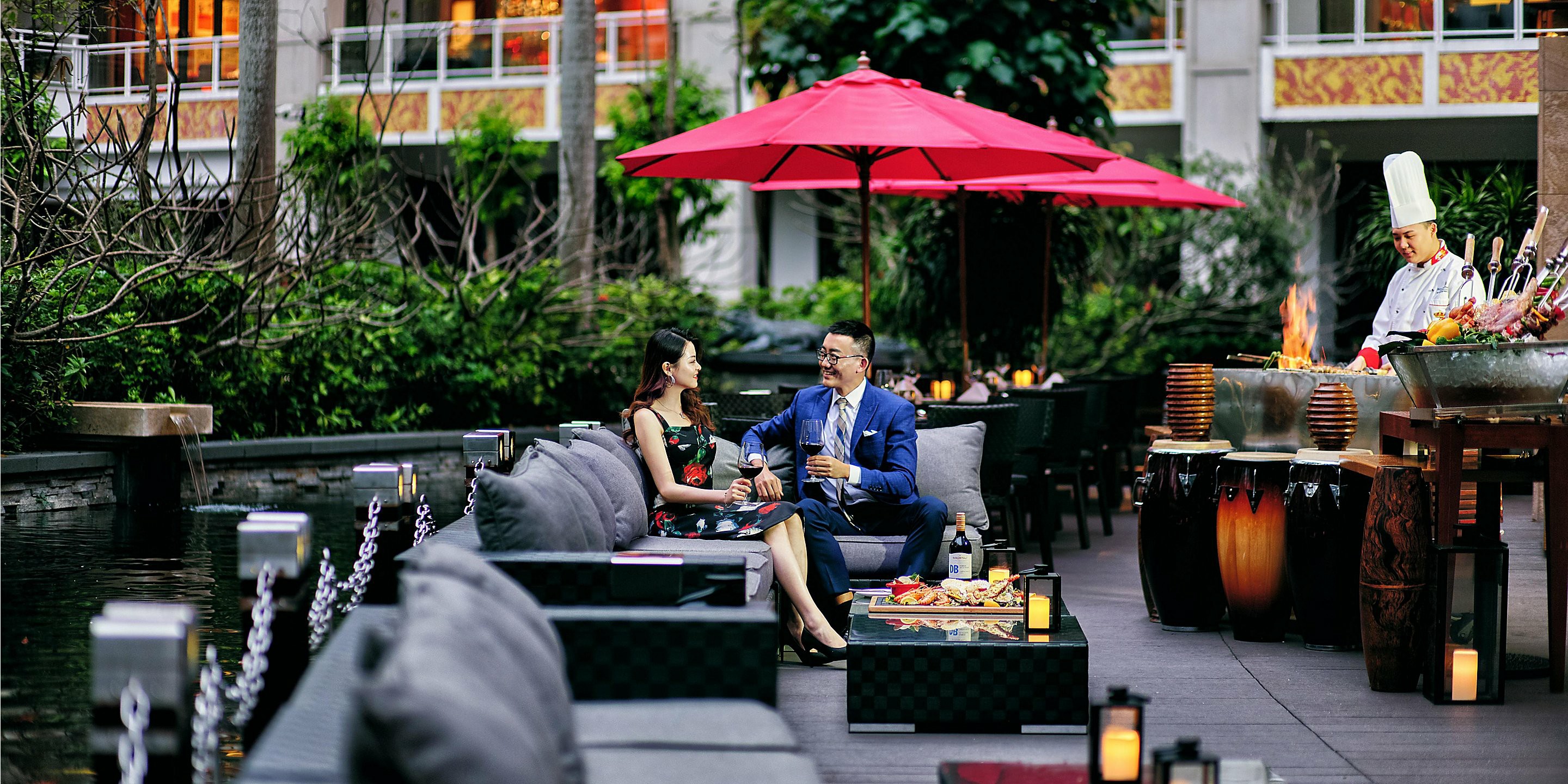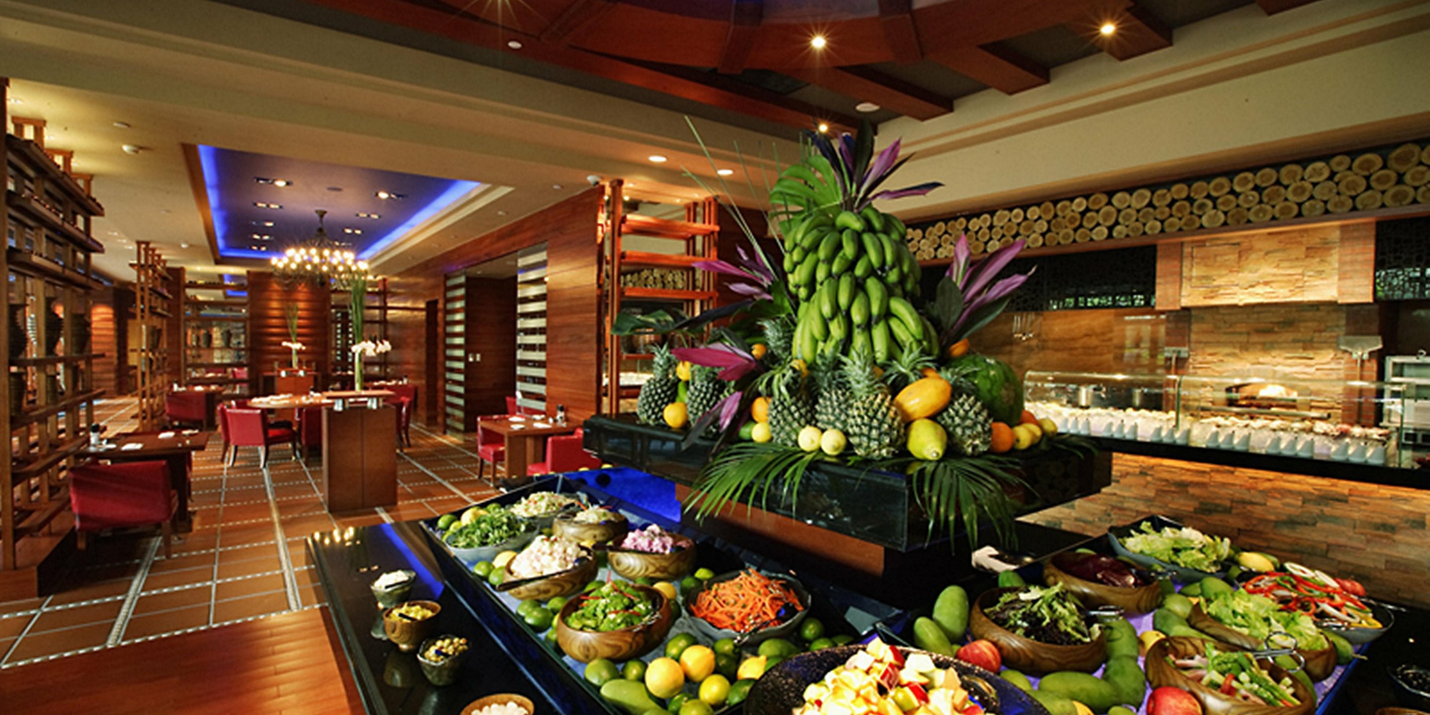 廣場(chǎng)咖啡廳搜羅中西知名菜式,無(wú)論是自助餐或零點(diǎn),都能迎合各國(guó)嘉賓的不同口味??扇菁{355位賓客同時(shí)就餐,并有兩個(gè)空中閣樓和池畔露天雅座供選擇。
