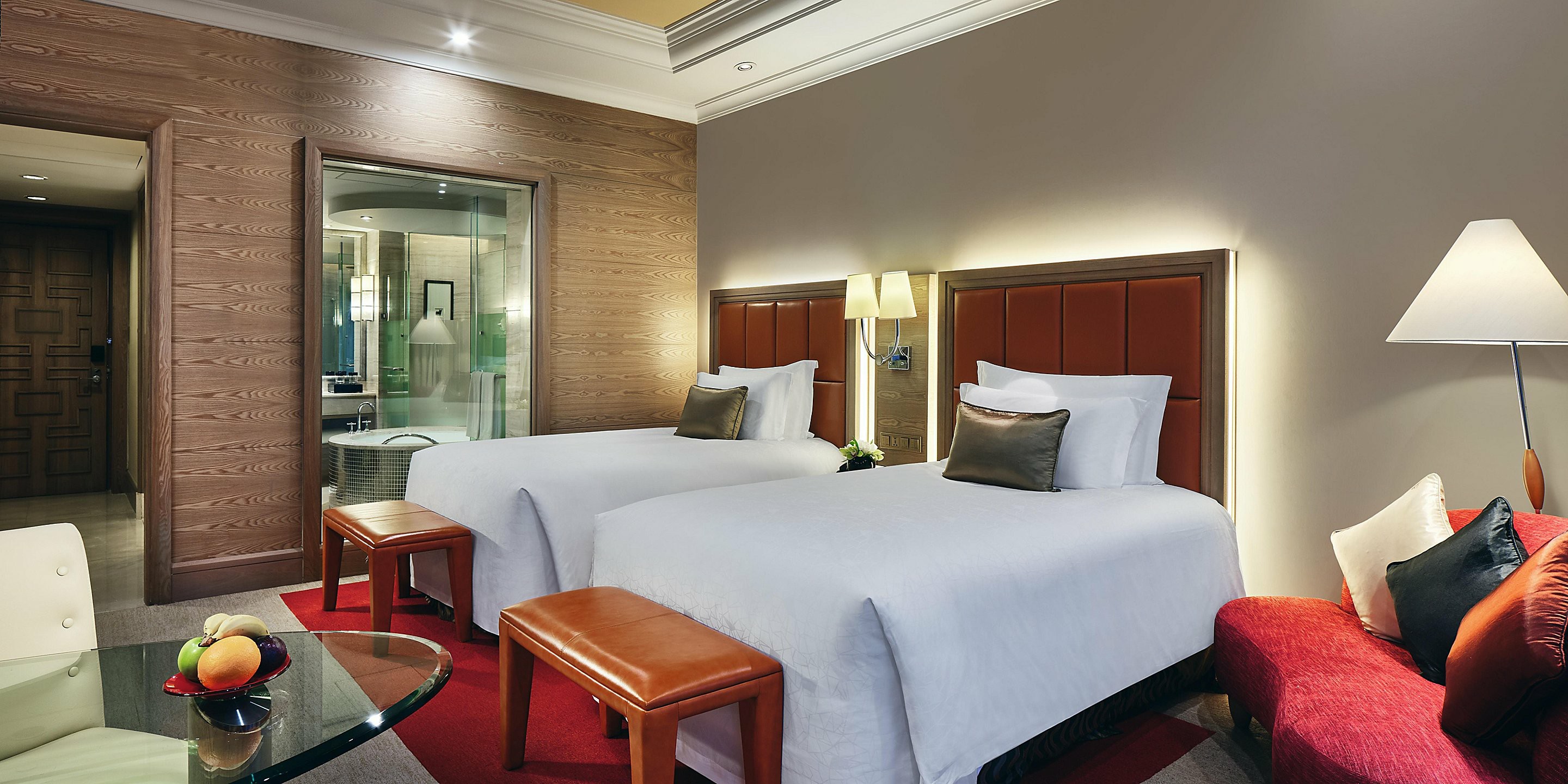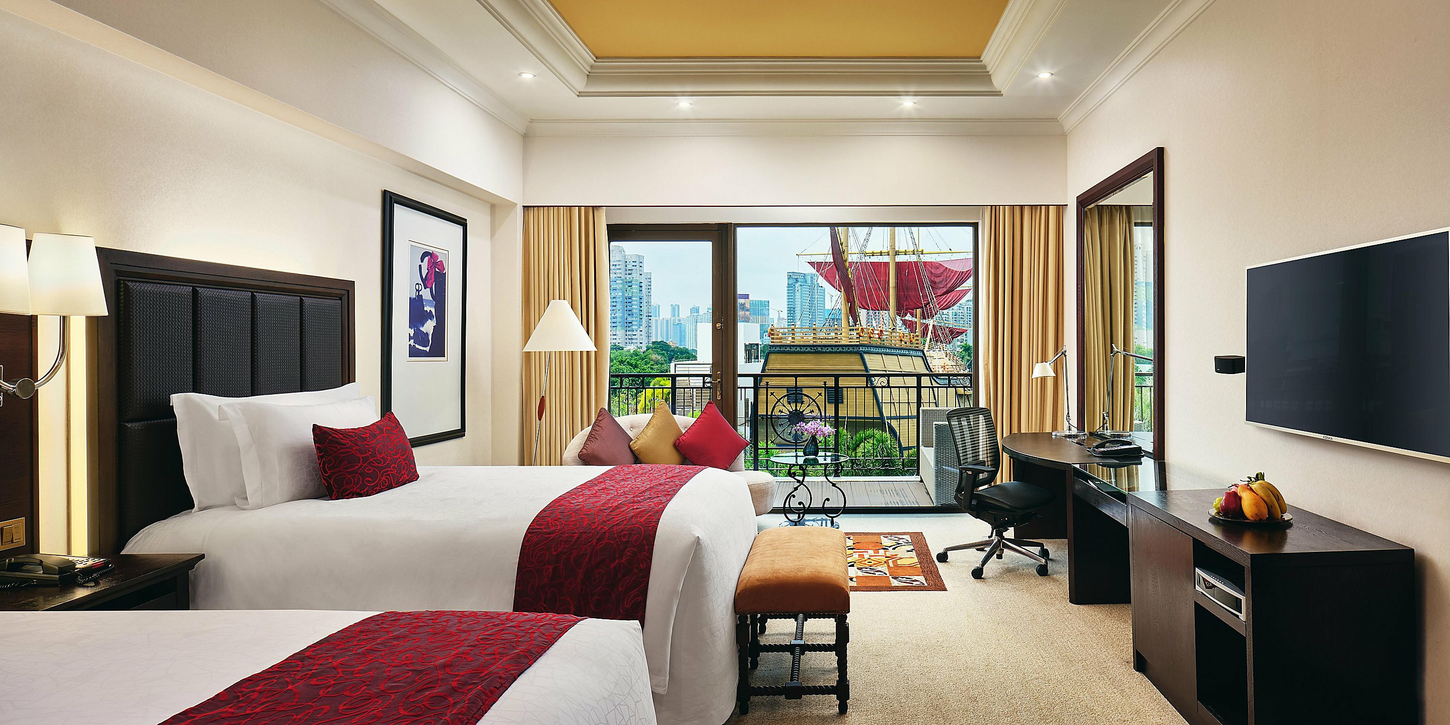 客房面積寬敞,55平方米起,擁有多種風(fēng)格包括西班牙、中式主題、現(xiàn)代摩登和經(jīng)典等。