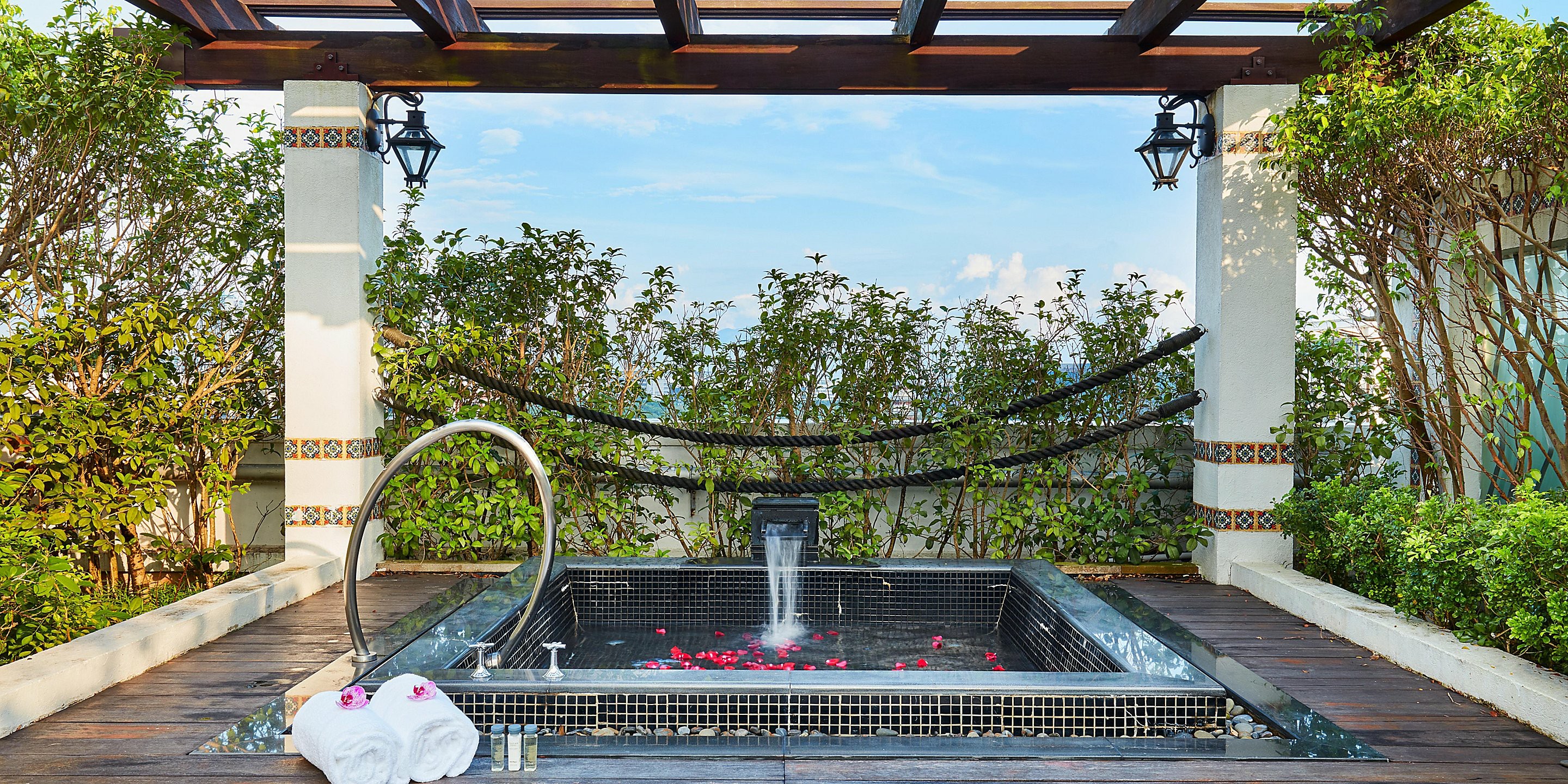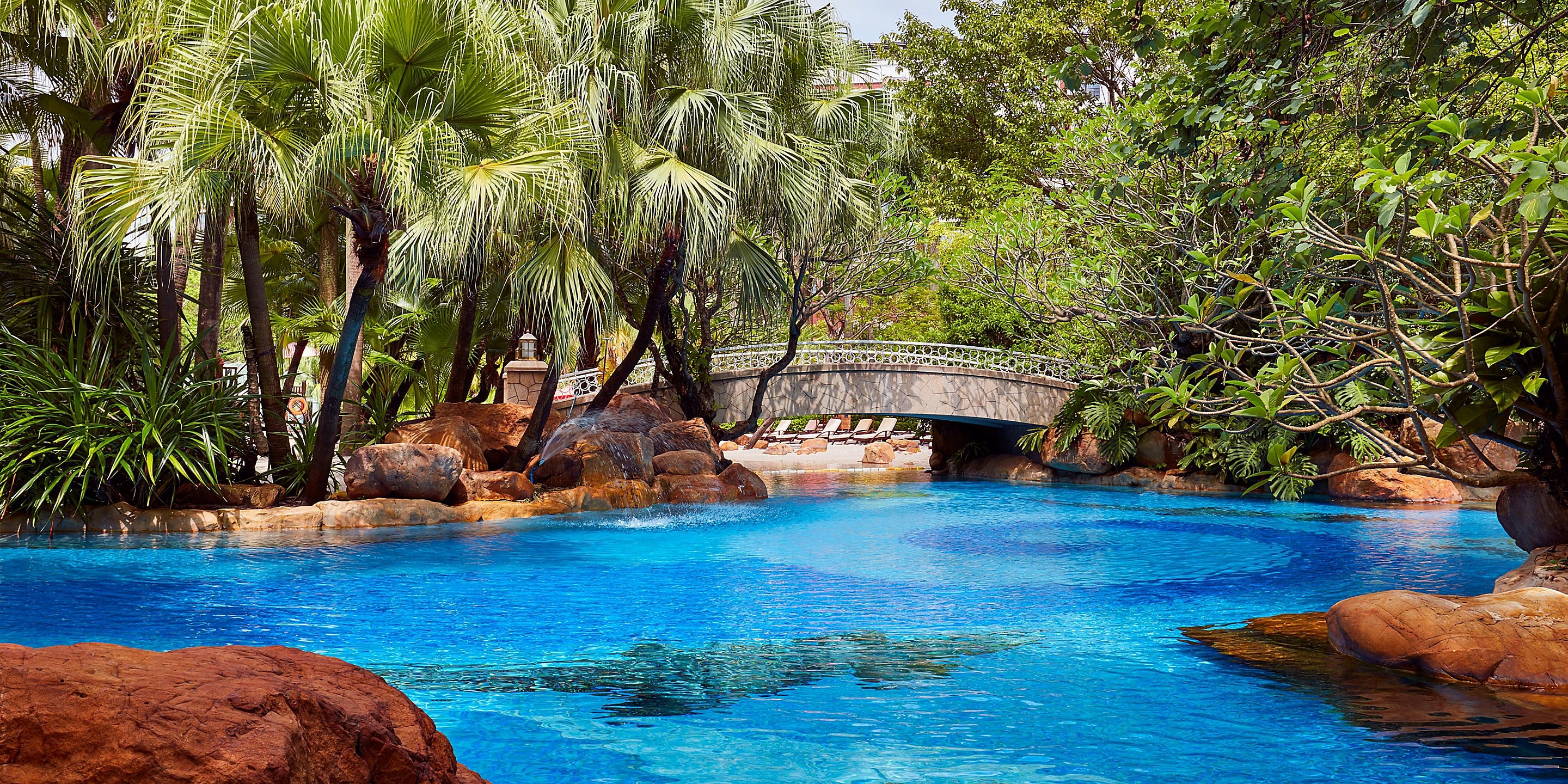 10000平方米的加勒比海式花園中,擁有人造沙灘和2000平方米的戶外泳池。