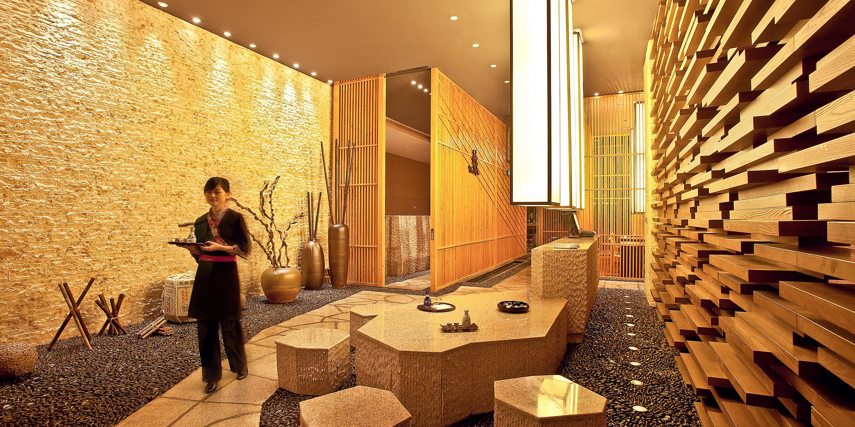 獨(dú)立榻榻米鐵板燒區(qū)域、半私密木柵隔斷區(qū)的用餐環(huán)境讓您更添用餐情趣。