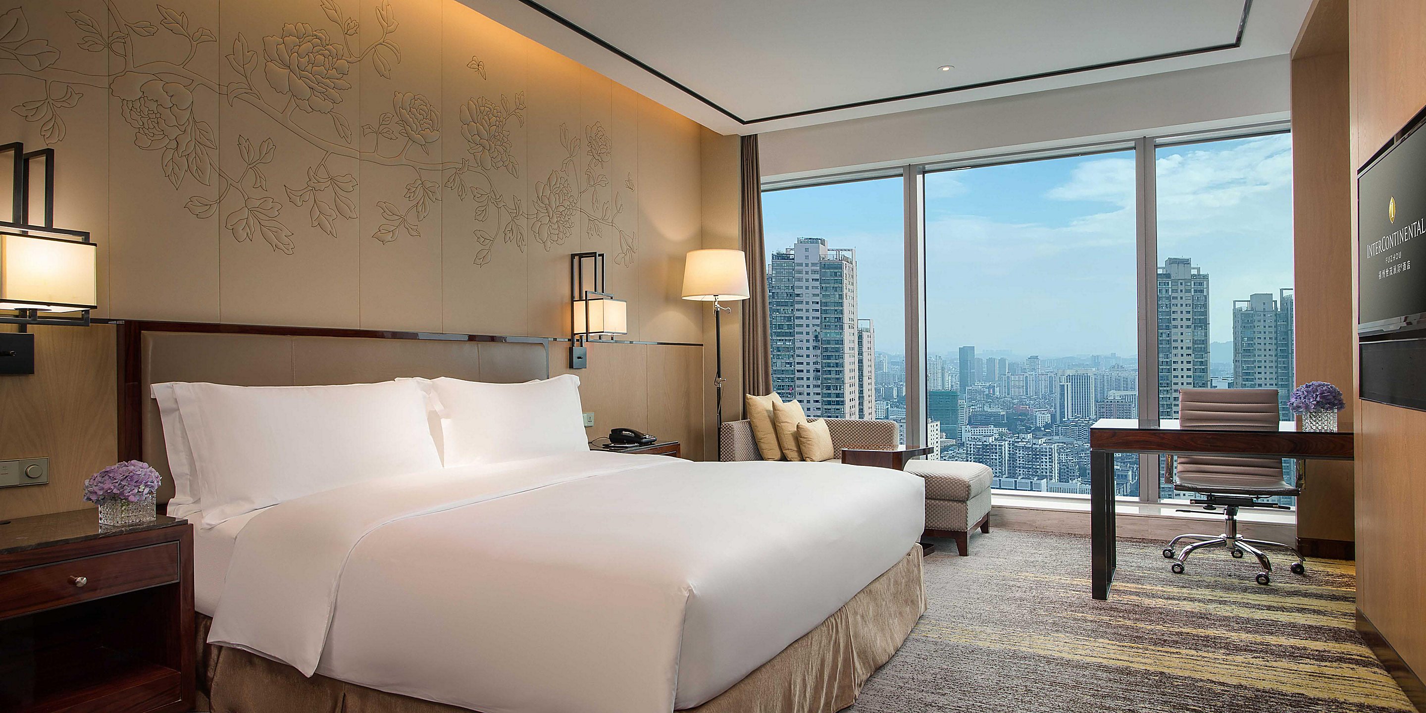 福州世茂洲際酒店建筑樓高58層,優(yōu)越的地理位置和獨特的建筑風格,讓酒店每間客房均擁有優(yōu)越的觀景視角,寬大的落地窗可一覽福州秀美的城景。
