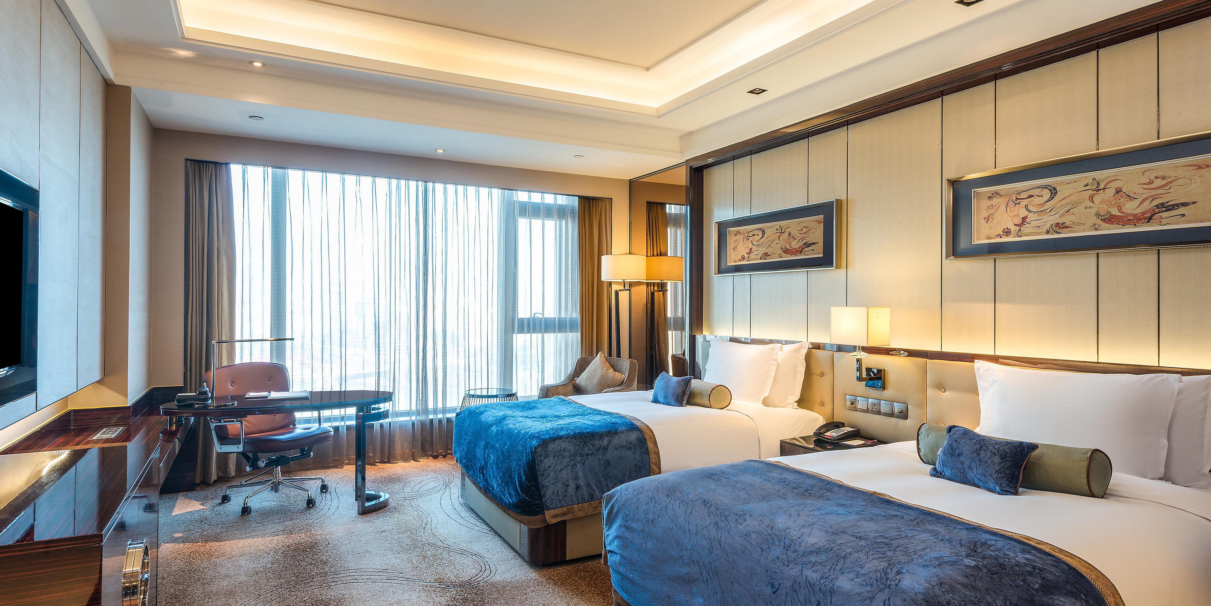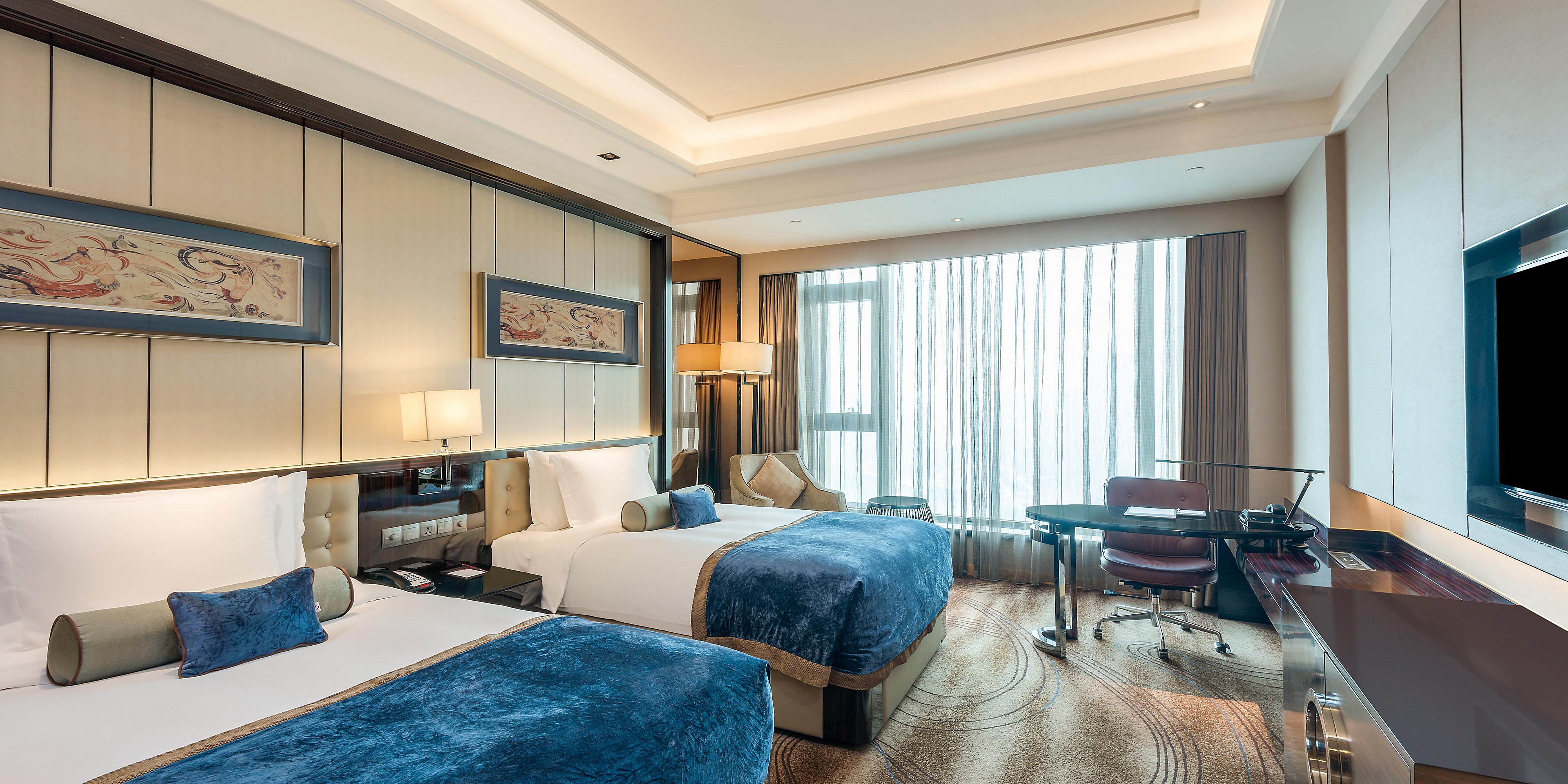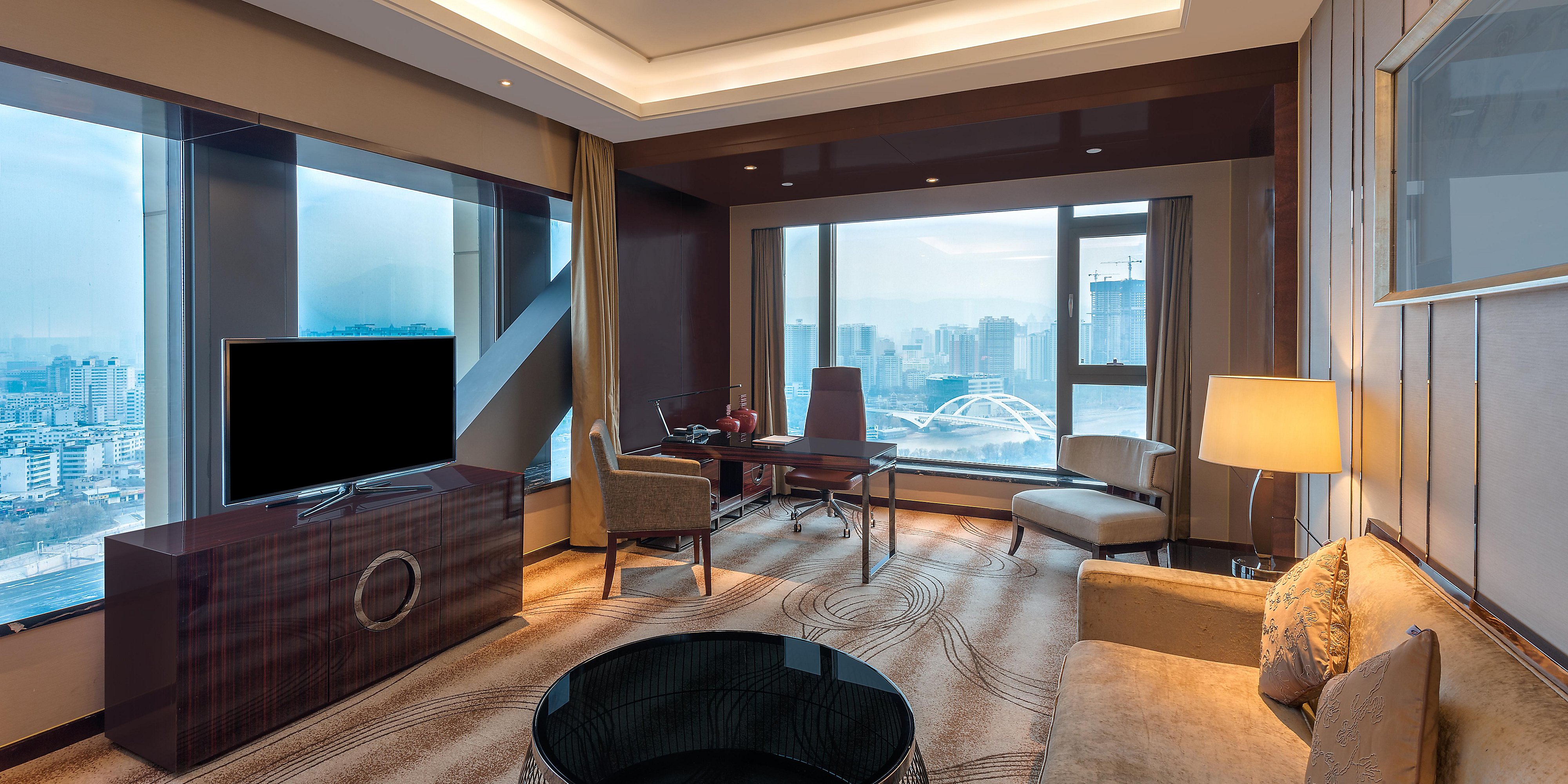 酒店建筑氣勢恢宏、裝飾靈動而秀美,擁有440間舒適與品位兼具的客房及套房,臨窗均可飽覽黃河美景,視野開闊。