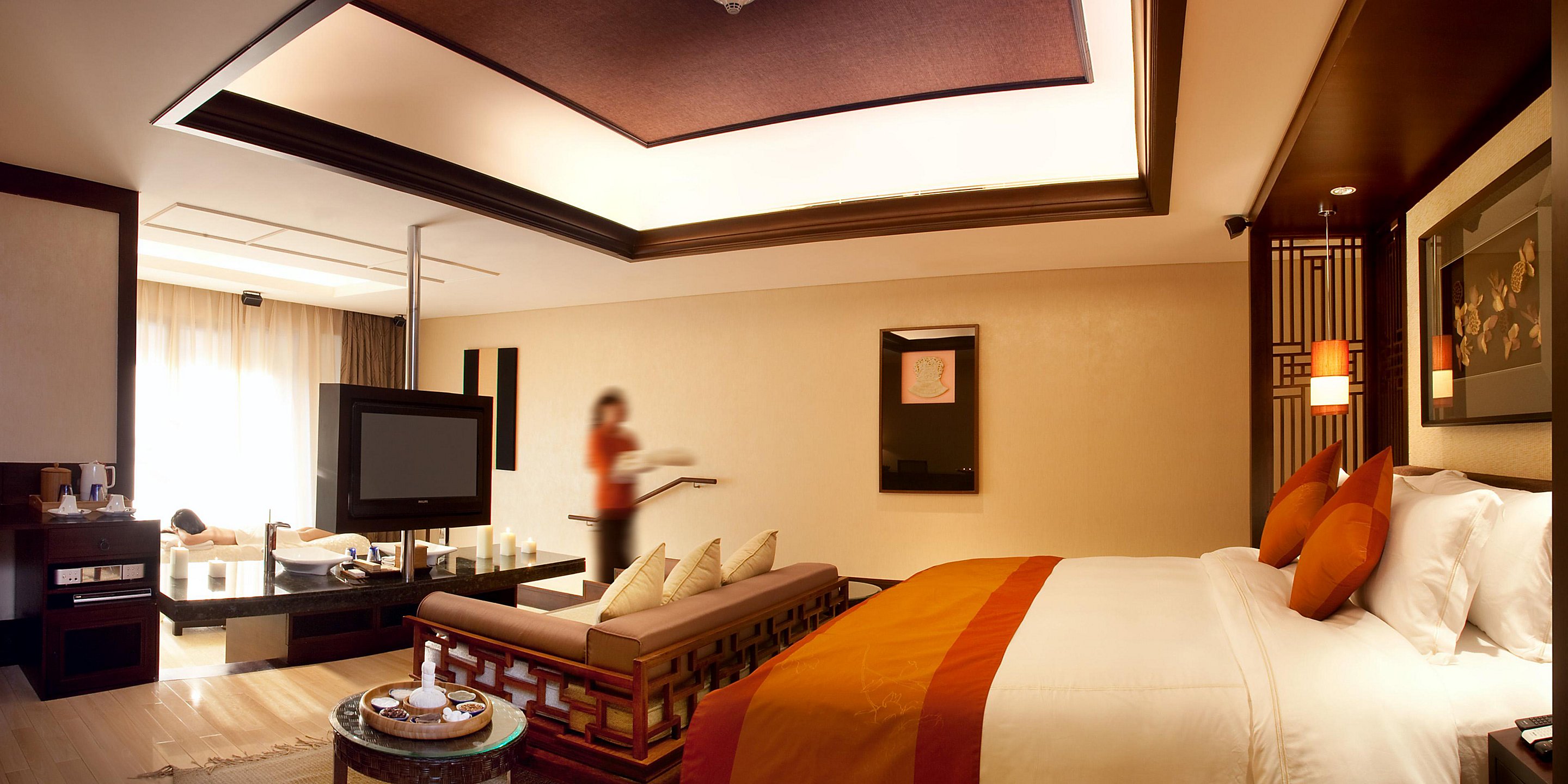 別墅區(qū)域設(shè)有1-3間臥室,其設(shè)計風(fēng)格完關(guān)融合了中國古典建筑和現(xiàn)代建筑風(fēng)格,所有房間配有專屬私人管家、專用溫泉泡池及休息涼亭。