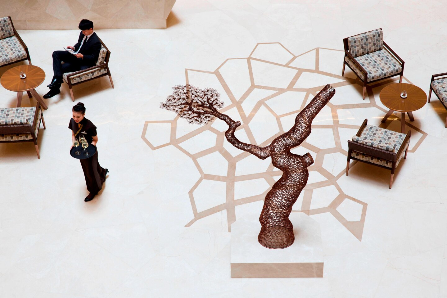 您可在鄭州綠地 JW 萬(wàn)豪酒店 Grill 燒烤餐廳進(jìn)行商務(wù)談判,在大堂吧享受放松的下午茶時(shí)光。