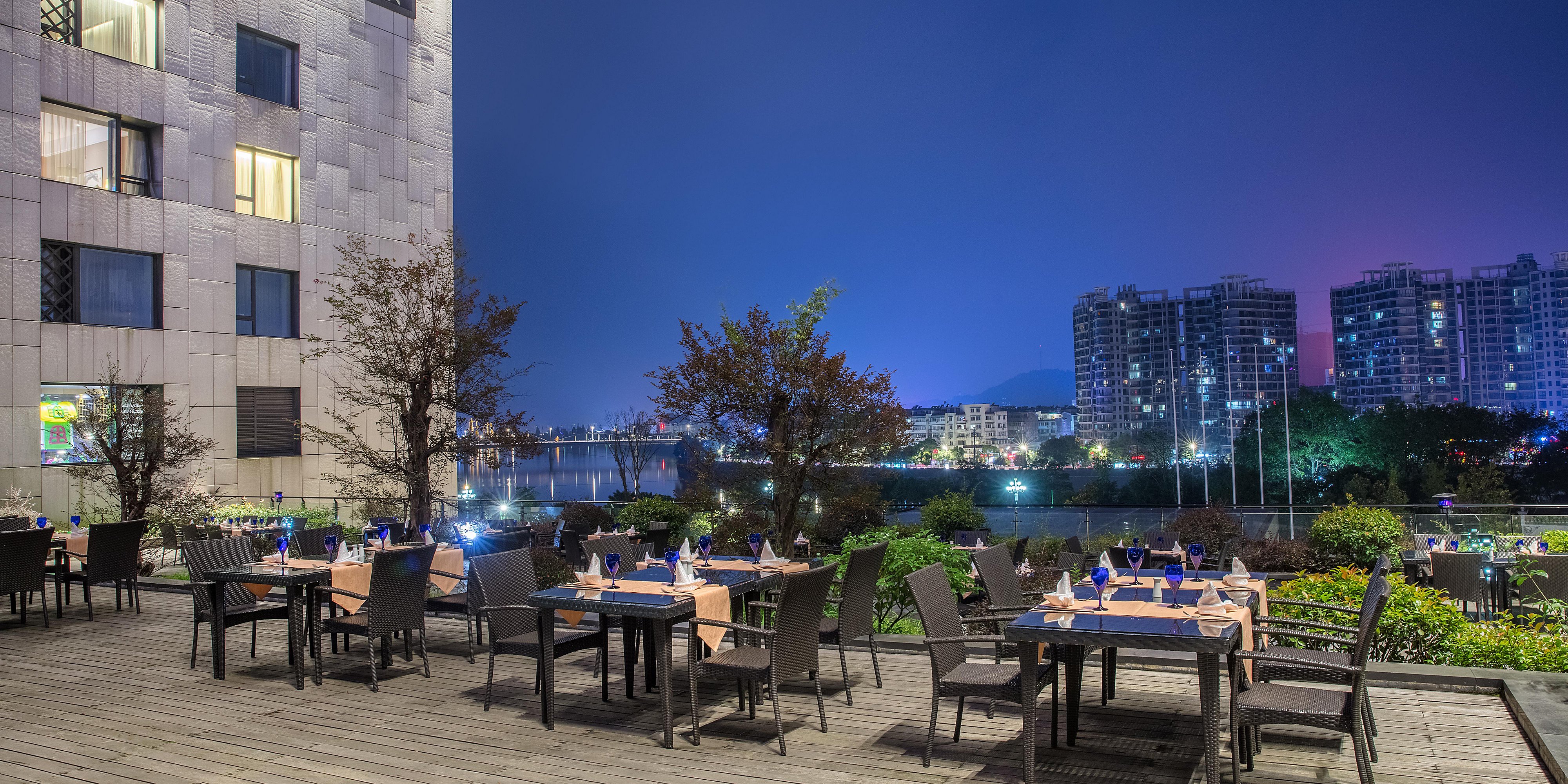 在酒店特色的云海中餐廳或是全日營業(yè)的江畔咖啡廳品嘗精美菜肴,大快朵頤。