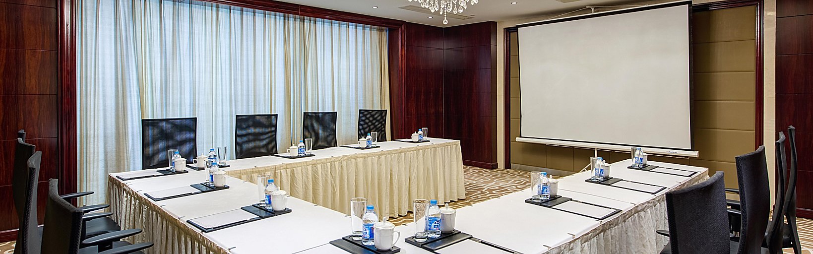 806平方米無柱式宴會廳可容納600人同時參會;另有4間多功能會議室,均配備多媒體投影儀、先進的視聽系統(tǒng)、高速網(wǎng)絡等。
