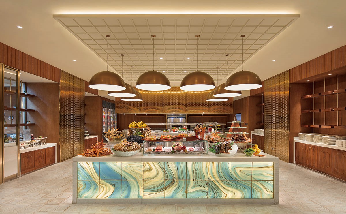賓客可以在品嘗本地精選菜式和全球風(fēng)味美食的同時,觀看廚師在互動式前進(jìn)展廚藝,餐廳定期更換主廚精選,并由主廚們帶著每日創(chuàng)意料理,到桌邊為客人直接服務(wù),創(chuàng)造出輕松地用餐環(huán)境,也可直接取得客戶反饋。2021年7月9日起,每天18:00-21:00,庭院將作為露天啤酒花園。