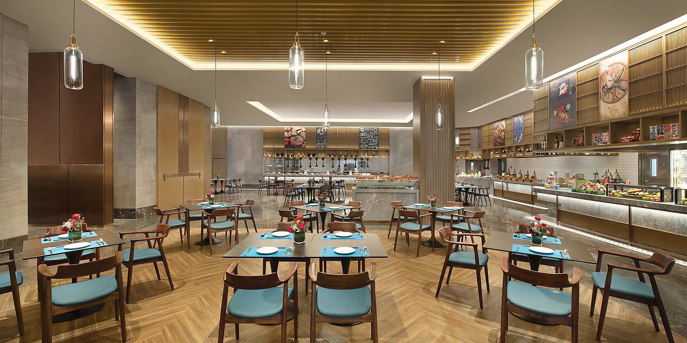 酒店內(nèi)設(shè)3家餐廳,全日制餐廳——星·咖啡廳,大堂酒廊—聚·吧及彩豐樓中餐廳。