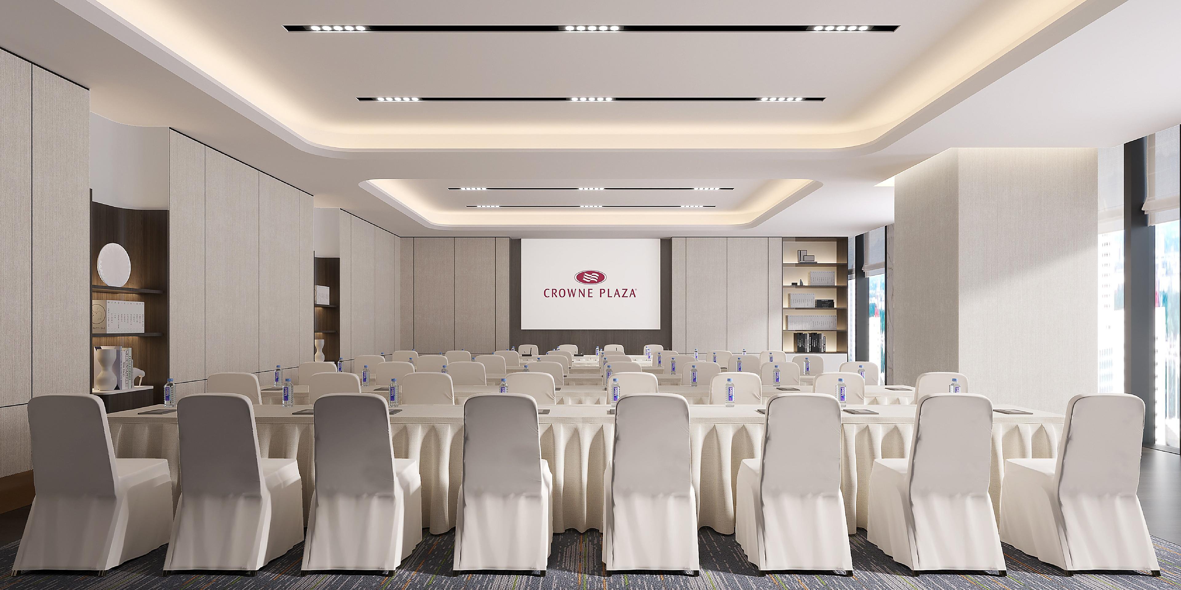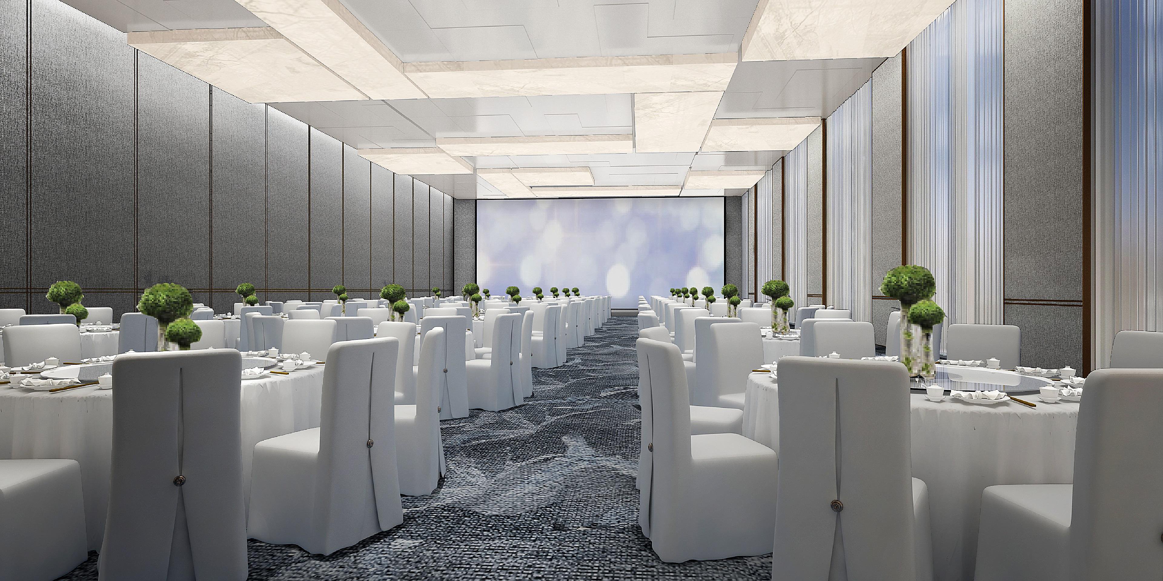 酒店1000多平方米的多功能會議場地包含一間550平方米無柱皇冠大宴會廳和四間多功能廳。