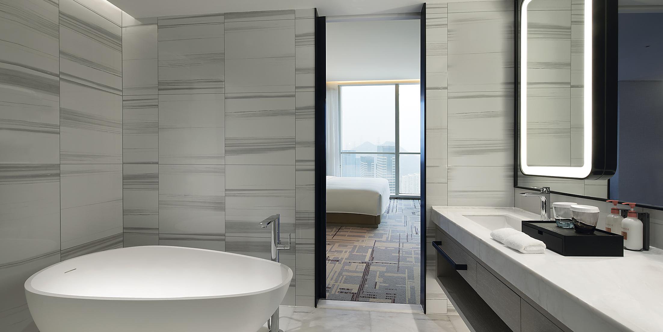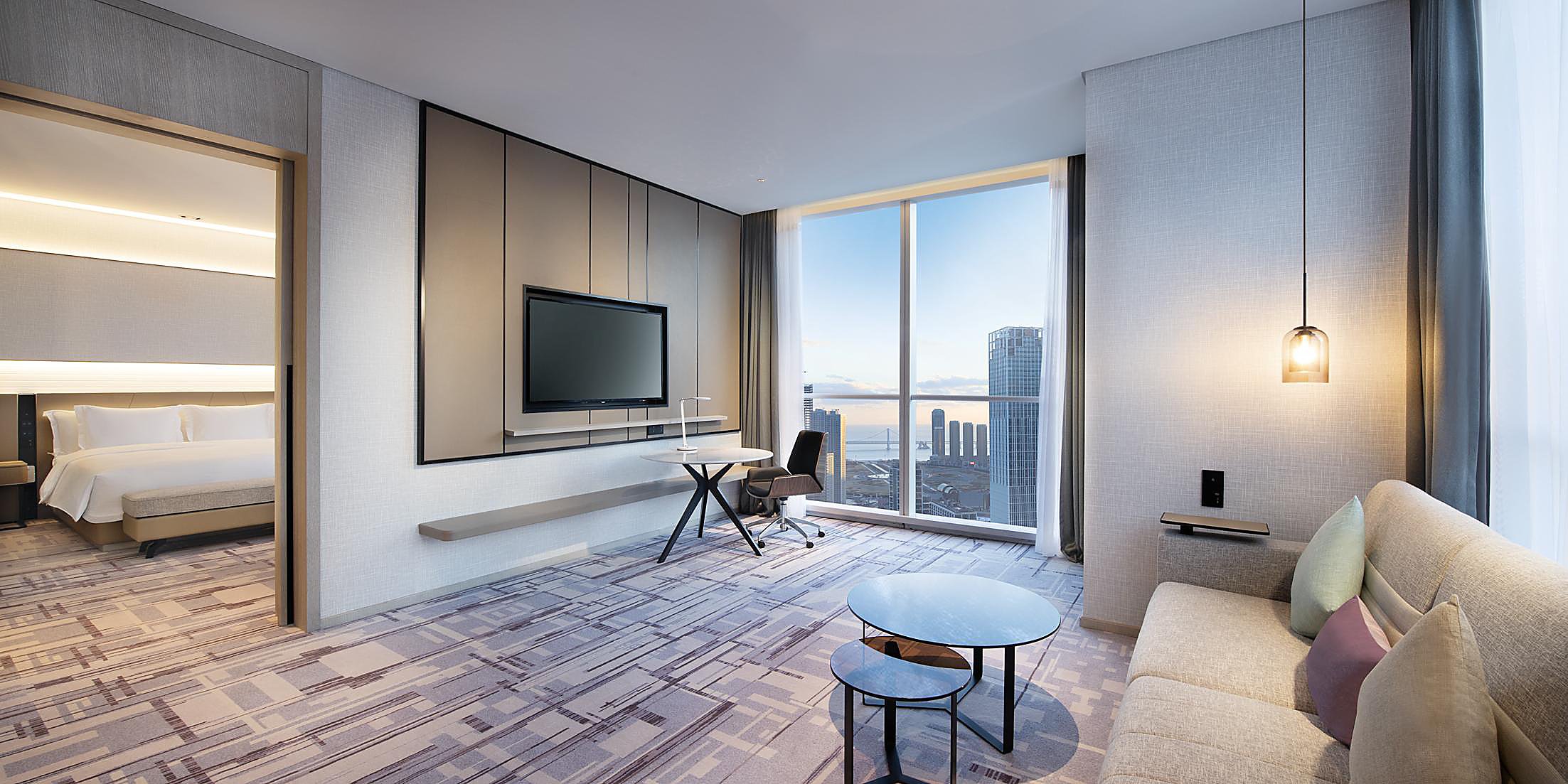 酒店設(shè)有300間摩登雅致的客房及套房。透過寬大的落地玻璃窗,眺望城市與遠(yuǎn)山近海相連。