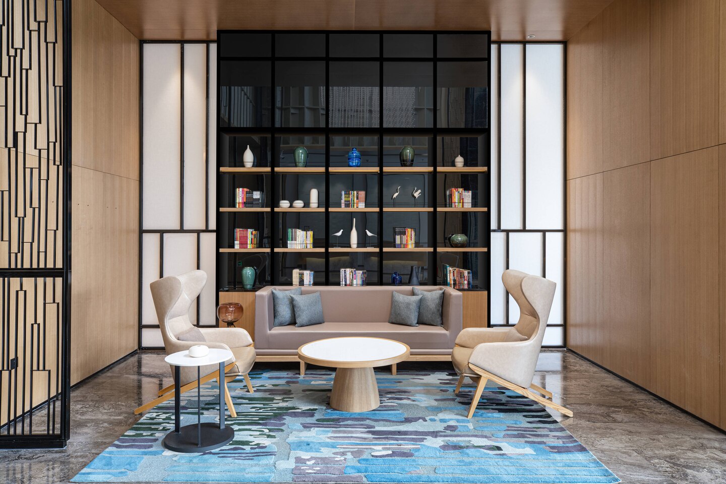 酒店大堂以簡潔明快的裝飾線條、多重質(zhì)感的材質(zhì)使用搭配現(xiàn)代風(fēng)格的家具和燈飾,帶來一種簡單率真的體驗(yàn)感。