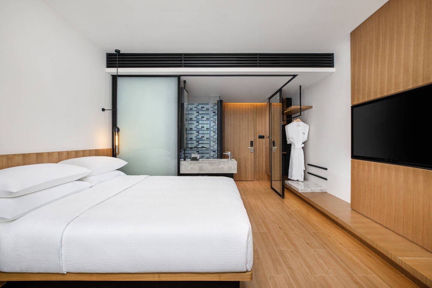 酒店客房和套房面積寬敞、布設(shè)時尚,設(shè)有光線充足的工作區(qū)和人體工學(xué)座椅,是商務(wù)辦公或休閑放松的理想之選。所有客房均提供免費(fèi)高速上網(wǎng)接口,整個酒店各處均可使用免費(fèi) Wi-Fi。