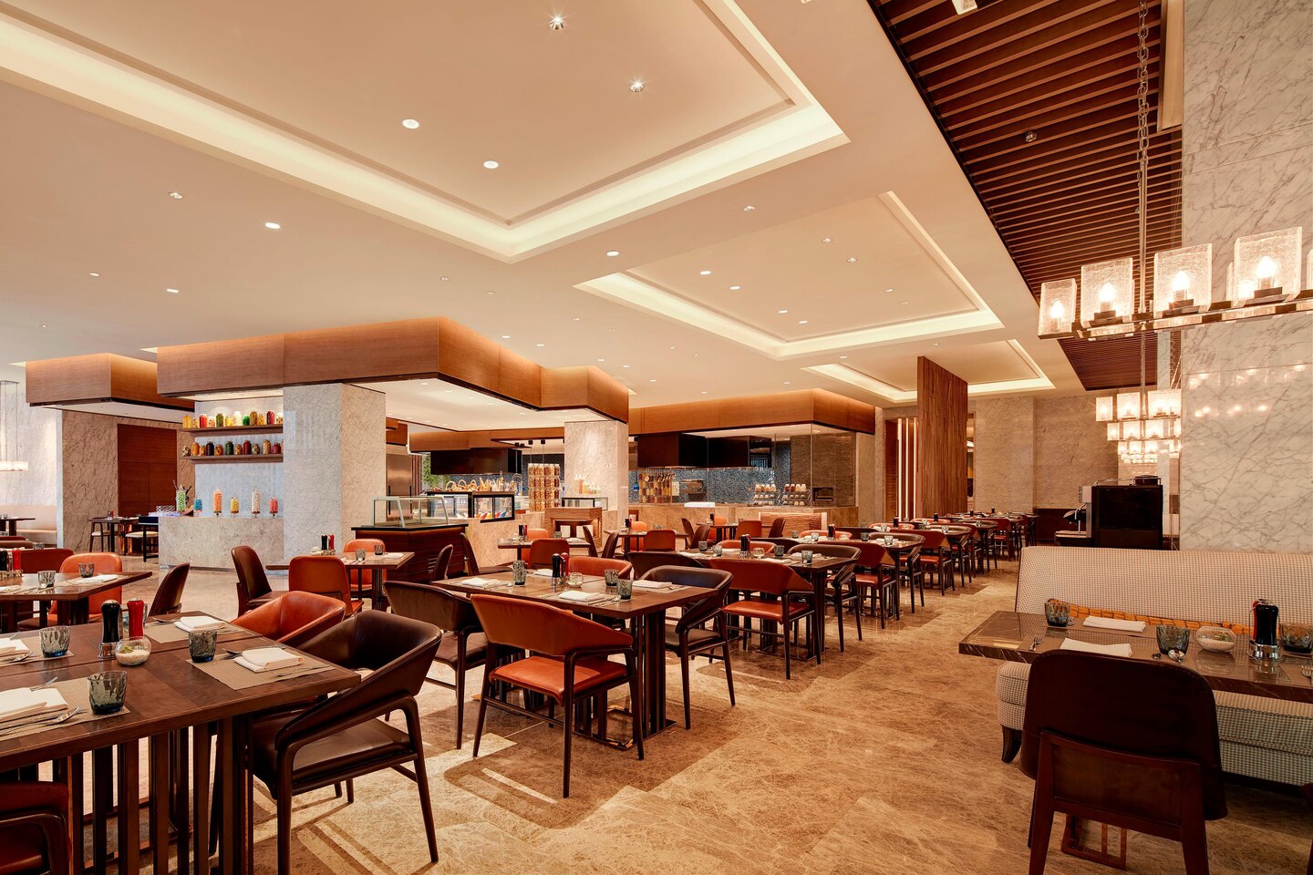 盛宴餐廳氛圍溫馨宜人,供應(yīng)別具新意的東西方風(fēng)味美食以及淄博當(dāng)?shù)夭穗取1M情享用酒店餐廳供應(yīng)的誘人自助餐,于開放式廚房前與廚師共話美食體驗,或者通過自選菜單隨心點餐。