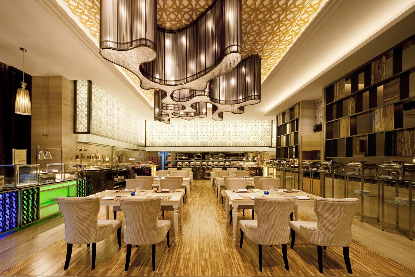 酒店的特色中餐廳、盛宴全日制西餐廳和大堂吧將是您與朋友或同事聚會(huì)共歡的完美之地。全日制的盛宴餐廳,您可在三餐期間隨時(shí)享用自助餐點(diǎn),同時(shí)領(lǐng)略開放式廚房與現(xiàn)場烹飪站的繽紛魅力。