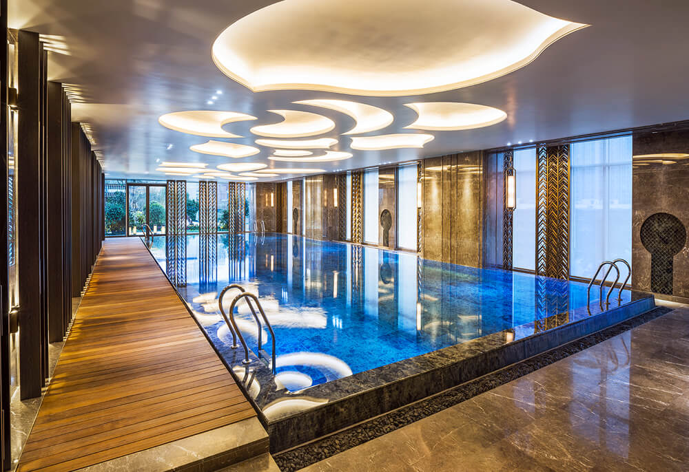此外酒店還有專門(mén)的SPA水療中心和室內(nèi)大游泳池。
