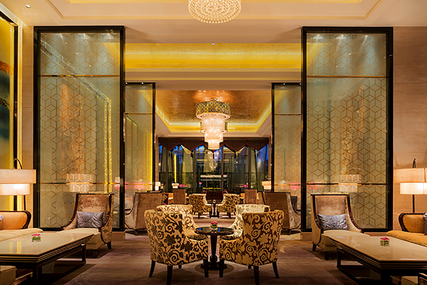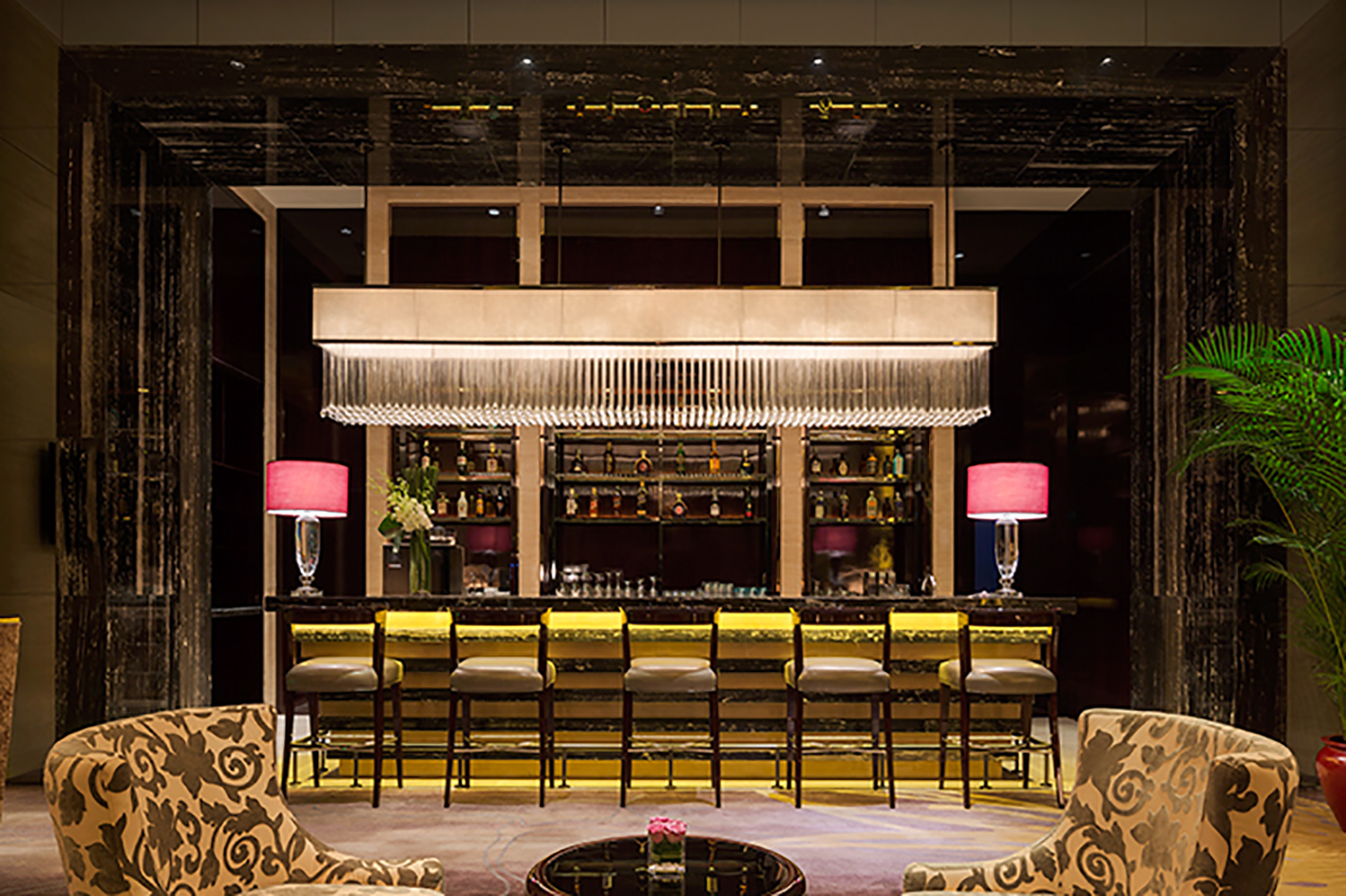 在游玩了一天之后,可以去往酒店大堂酒廊享受片刻的安寧。