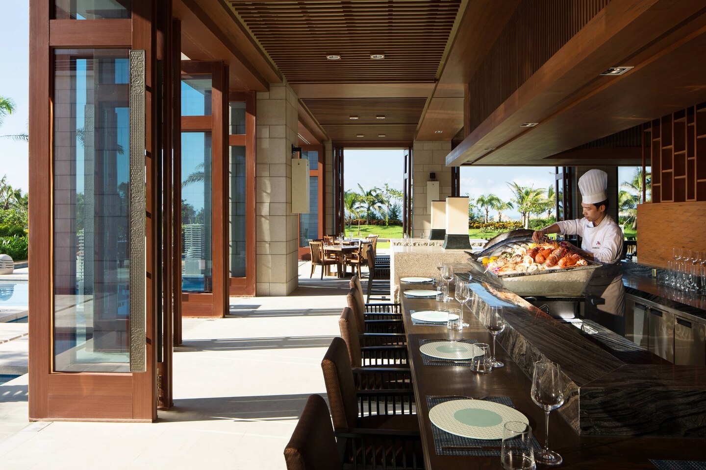 優(yōu)雅的 Big Fish & Bar 餐廳供應(yīng)現(xiàn)捕海鮮,設(shè)有 360 度開(kāi)放式廚房,還可欣賞??诘拿匀嗣谰啊g迎于此享用每日鮮捕漁獲,品飲特色雞尾酒、啤酒和精品葡萄酒等精選酒水。